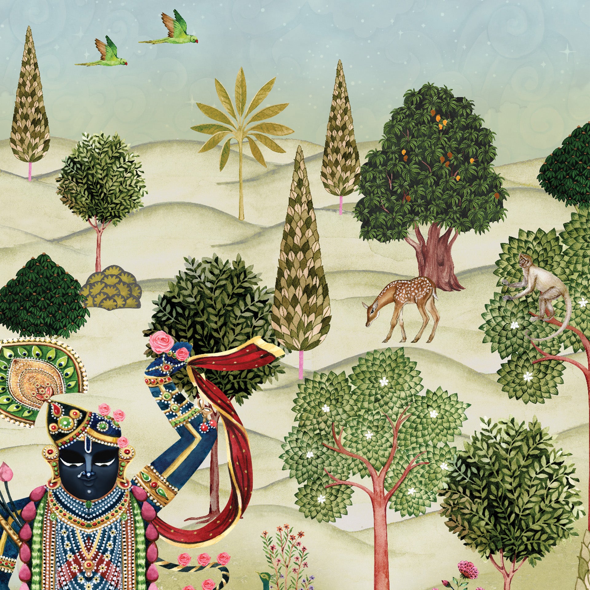 Vrindavan Vihar: Colorful Krishna Illustration in Traditional Style