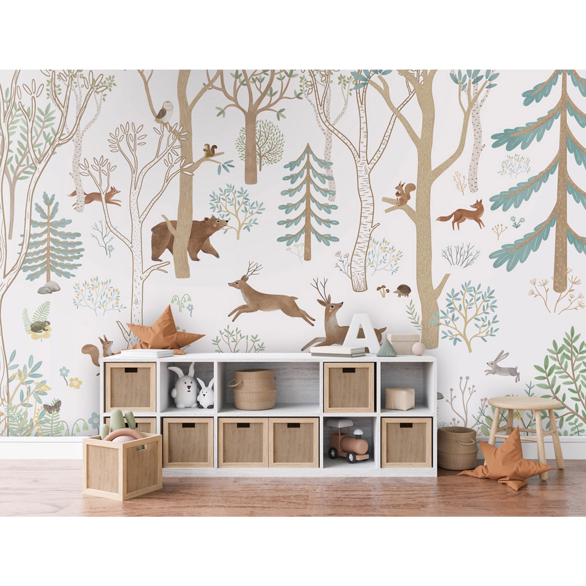 Frisky Forest:Woodland Forest Animals Watercolor Pattern With Deer, Bear, Fox and Squirrels for Nursery Décor