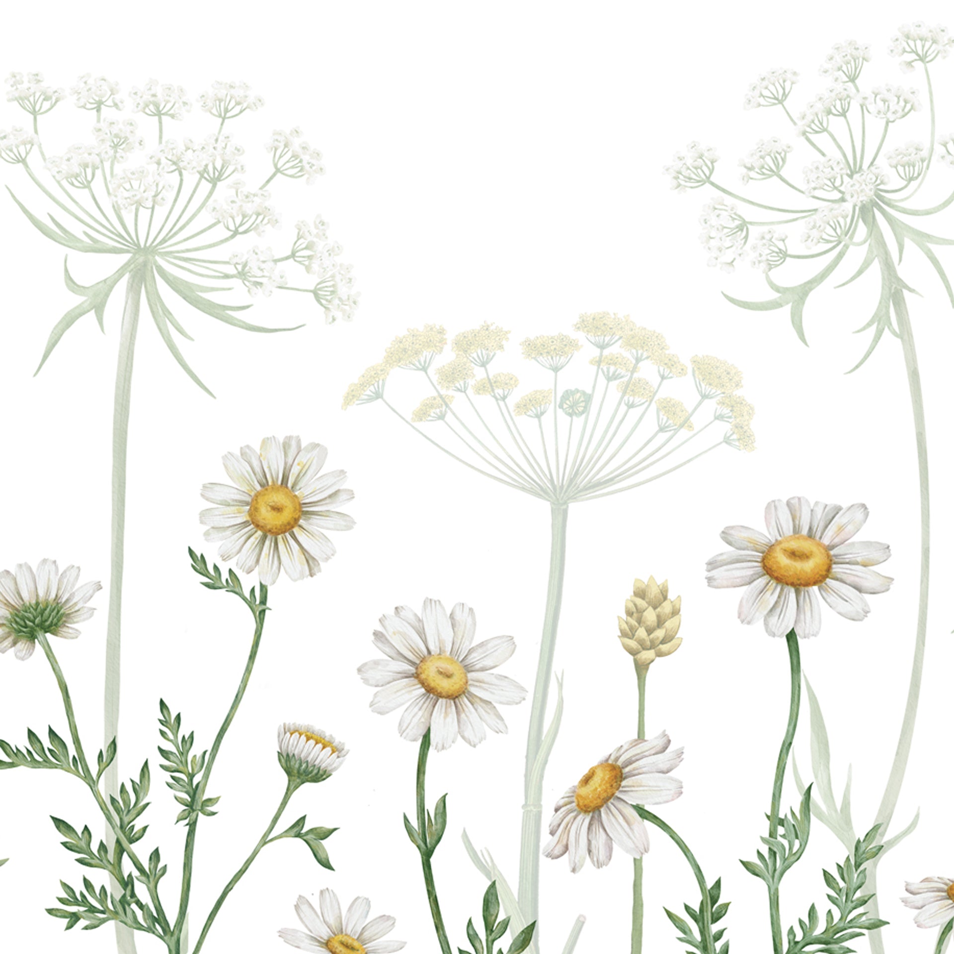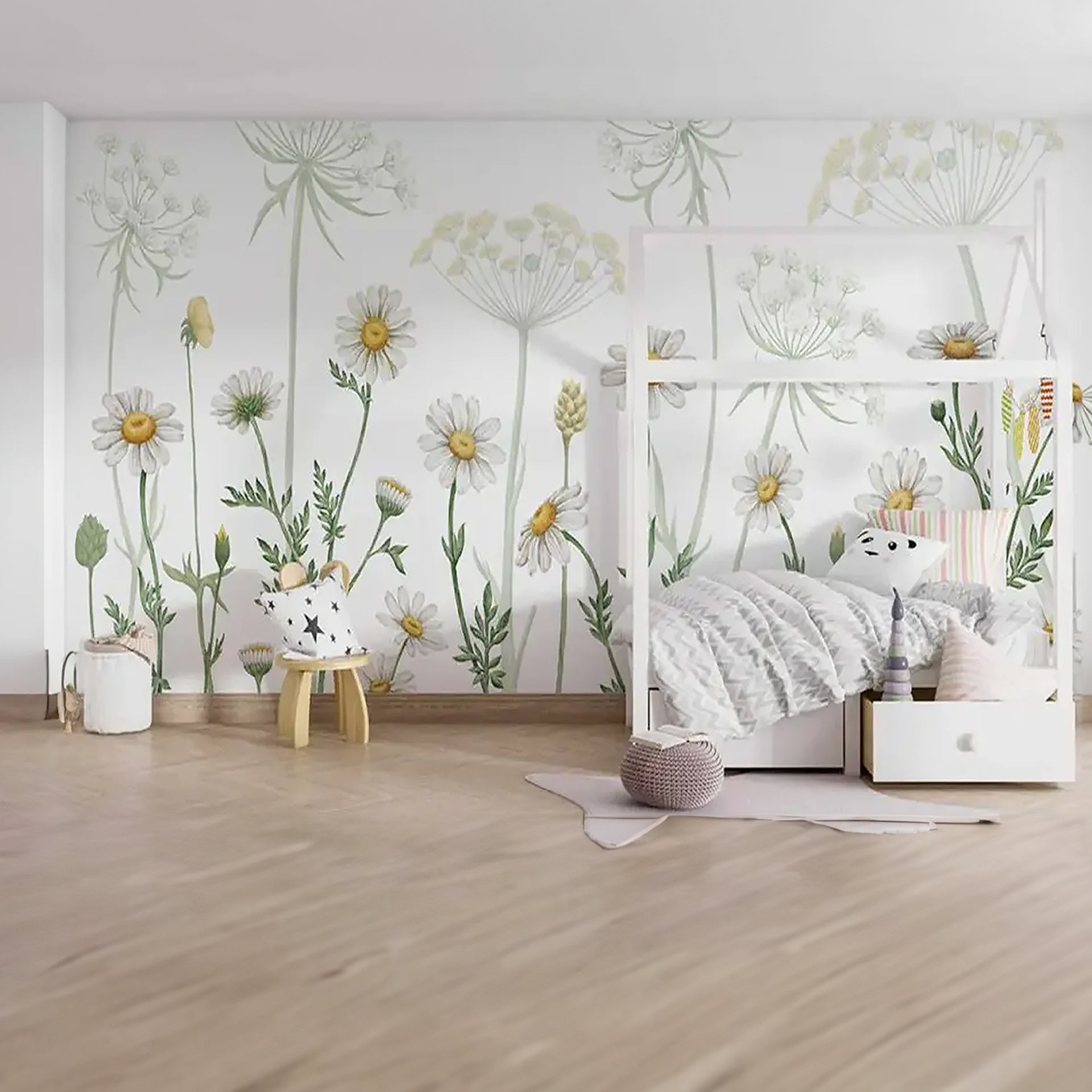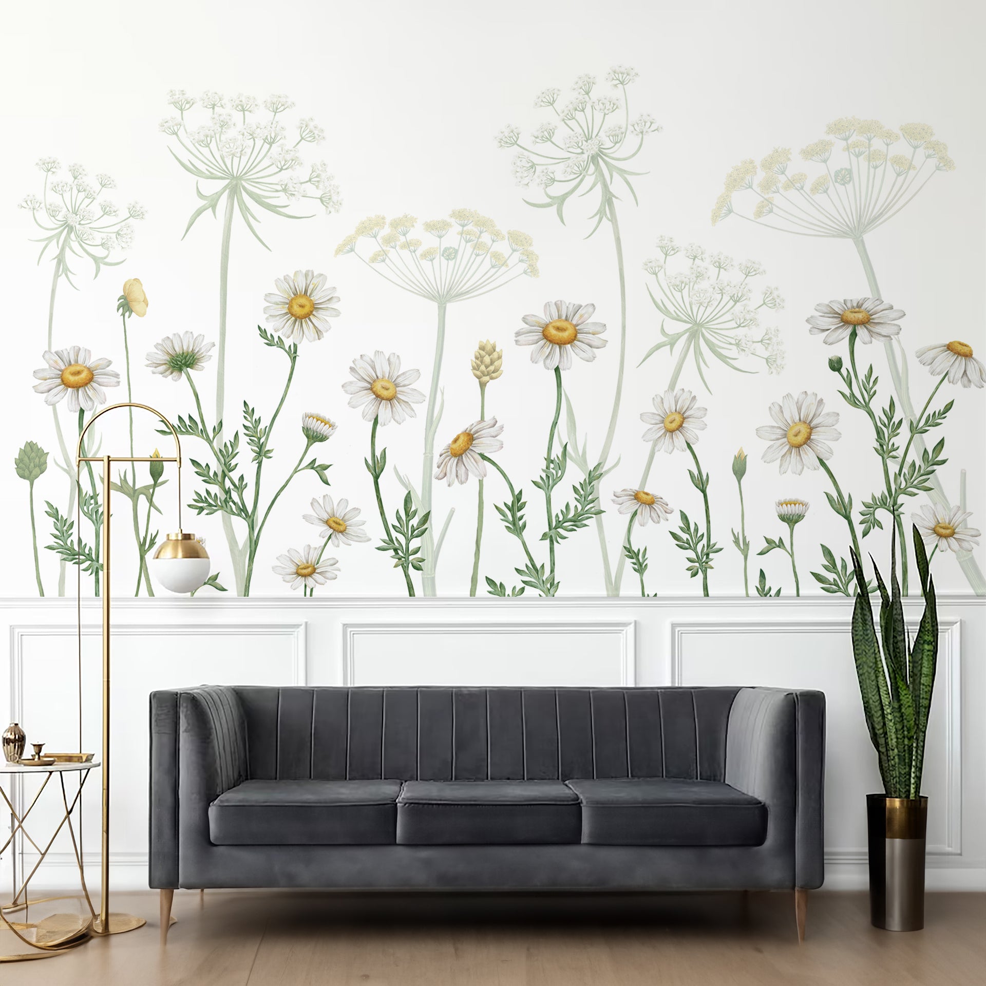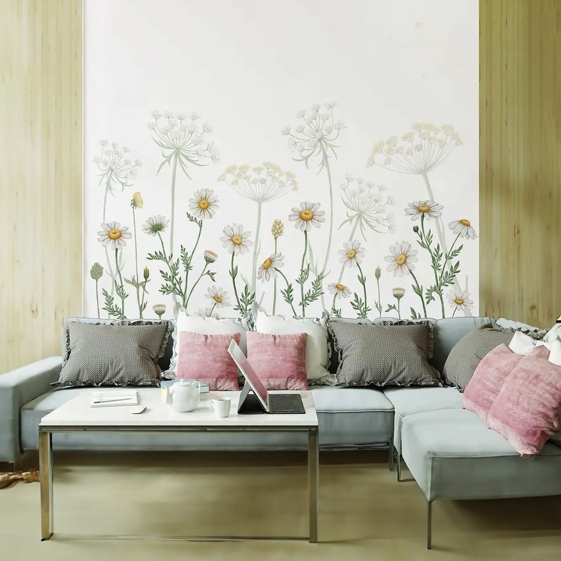 White Daisies Wallpaper with delicate daisy motifs on a soft backdrop, this floral wallpaper adds a fresh, airy feel to bedrooms, living rooms, or nursery walls. Perfect for those seeking botanical wallpaper with a modern twist and timeless appeal.