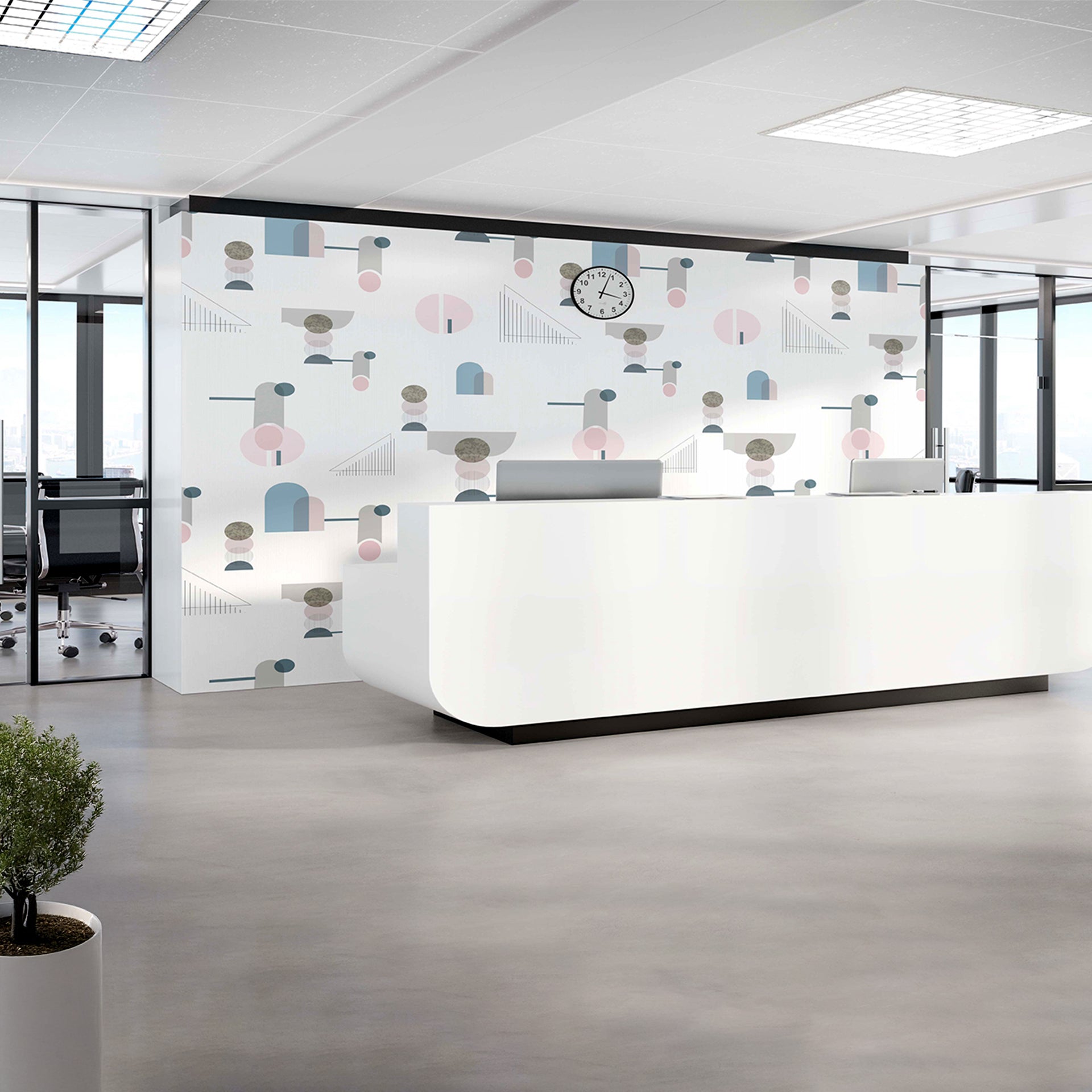 Abstract Angles Wallpaper with geometric shapes and dynamic lines that add a modern artistic touch to commercial spaces.