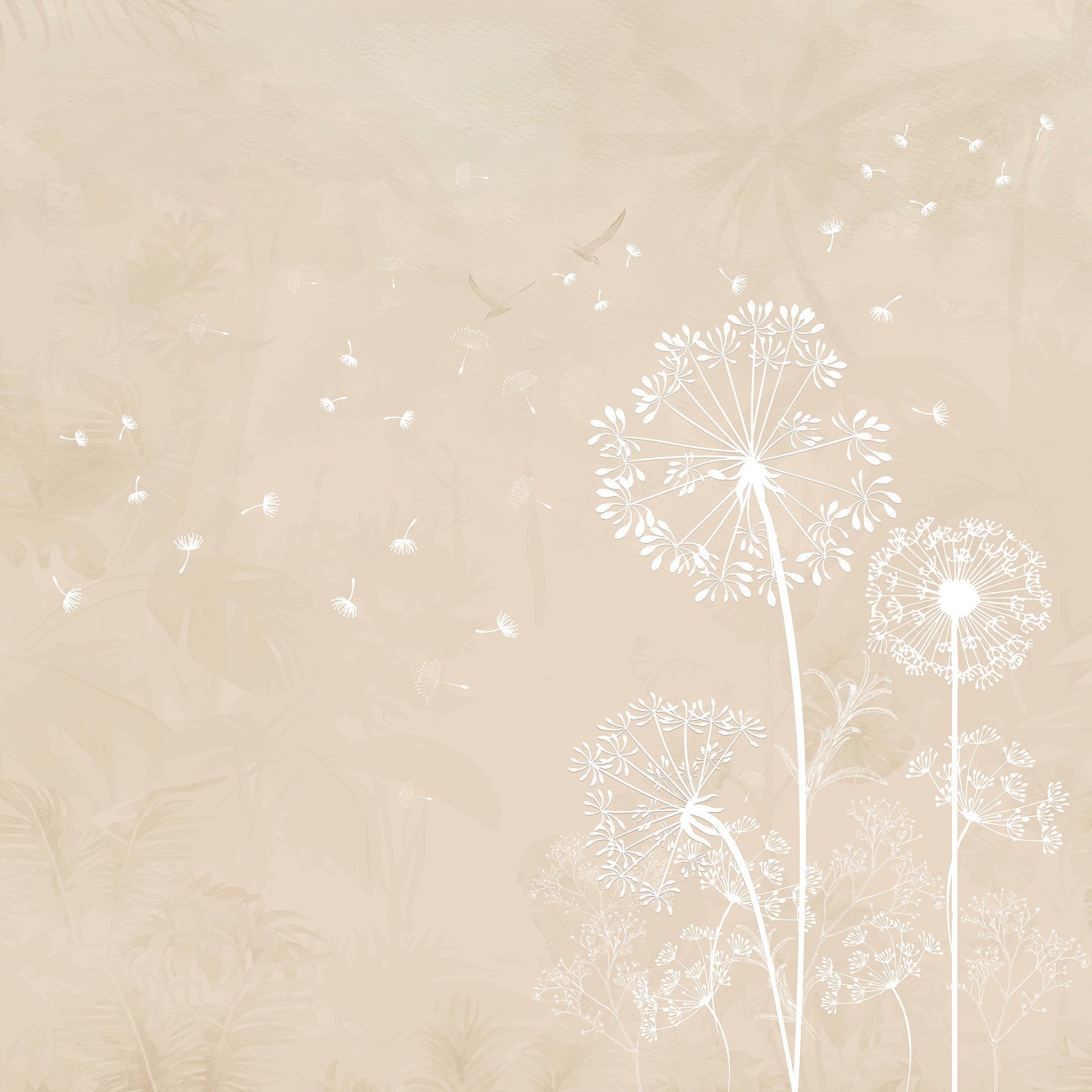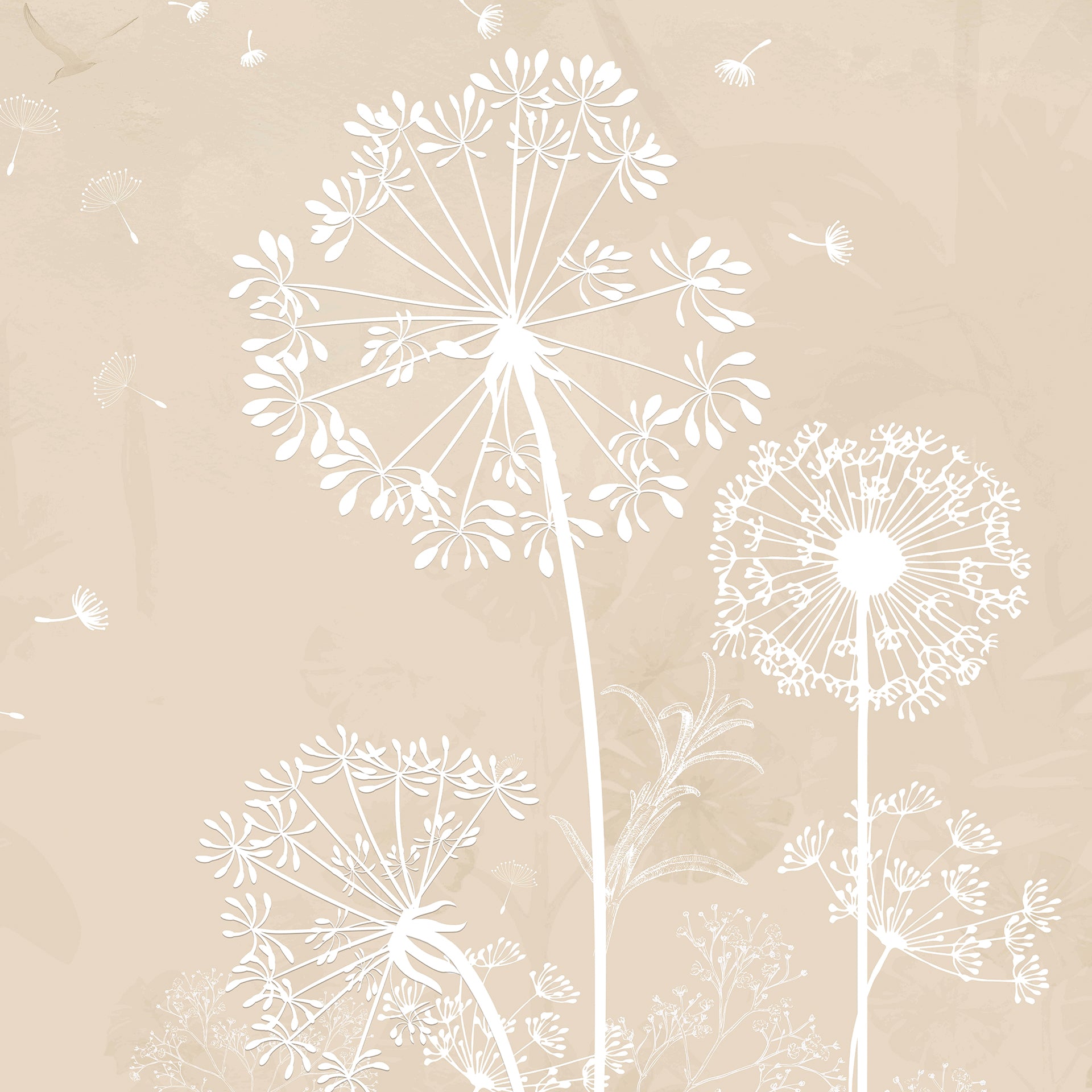 Delicate Dandelions: White Silhouettes on a Soft Beige Minimalist Background