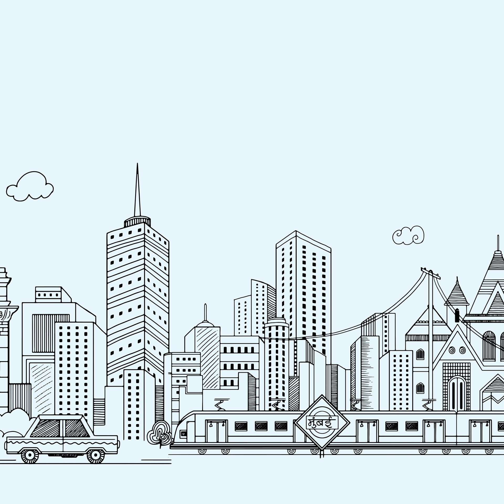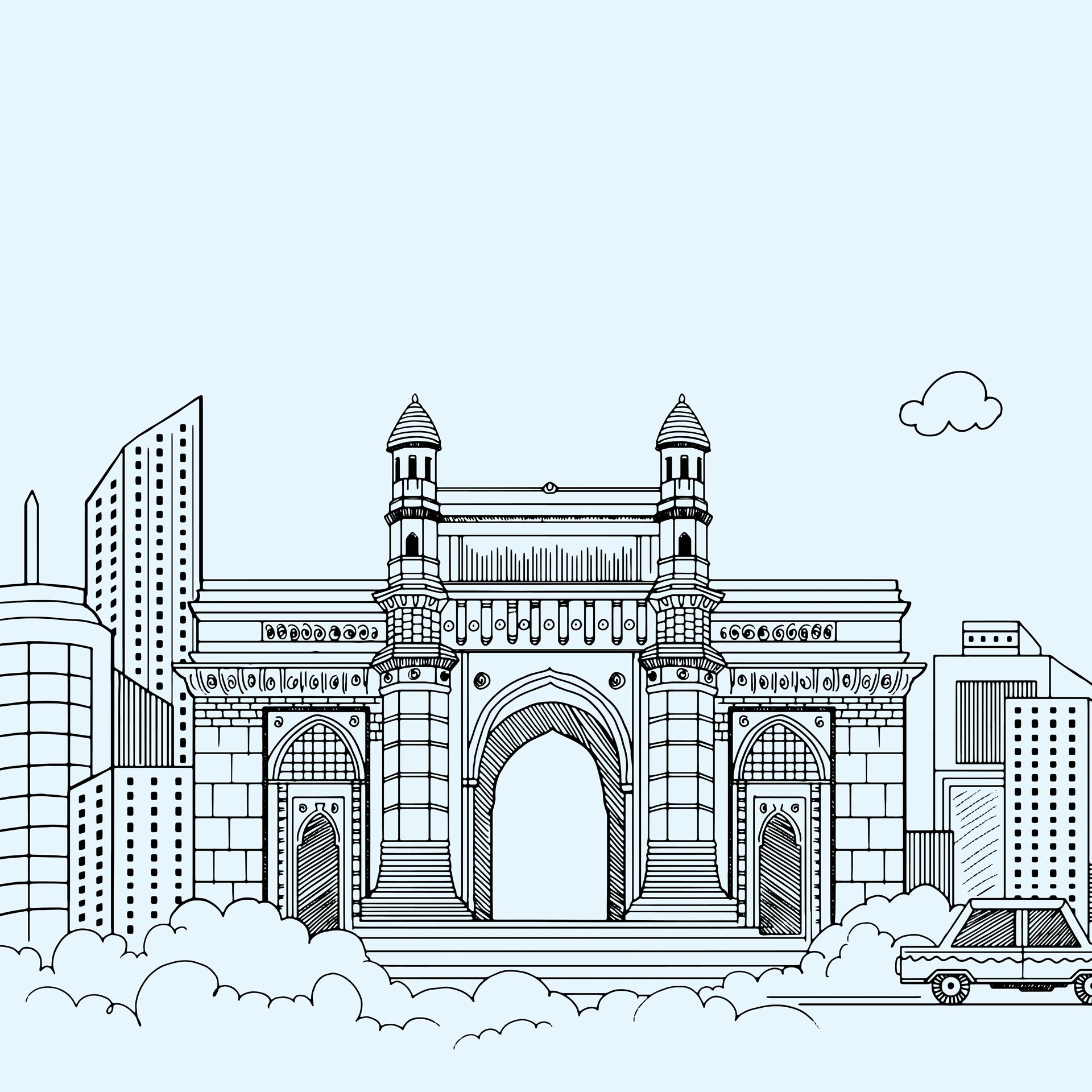 Mumbai Skyline: Illustrated Skyline Featuring Landmark Architecture And Modes Of Transportation