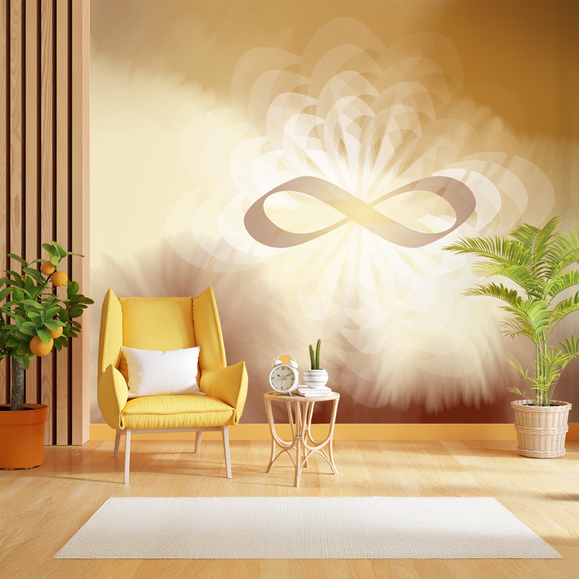 Anadi Ananta infinity symbol wallpaper in soft golden tones evokes harmony, balance, and endless energy.Perfect for meditation rooms, temple room, living areas, or statement walls, this wallpaper adds a subtle yet powerful presence to any space.