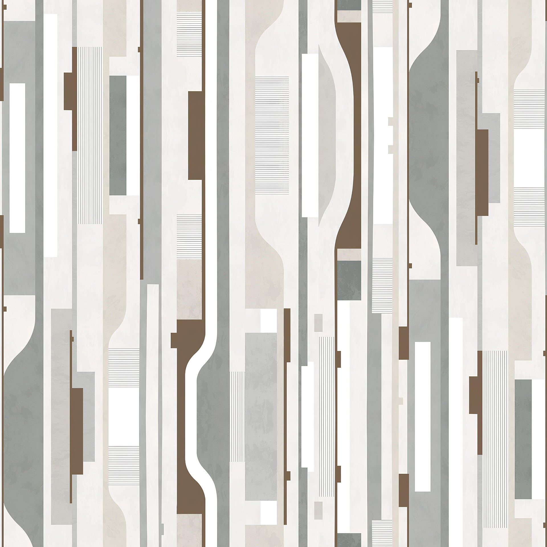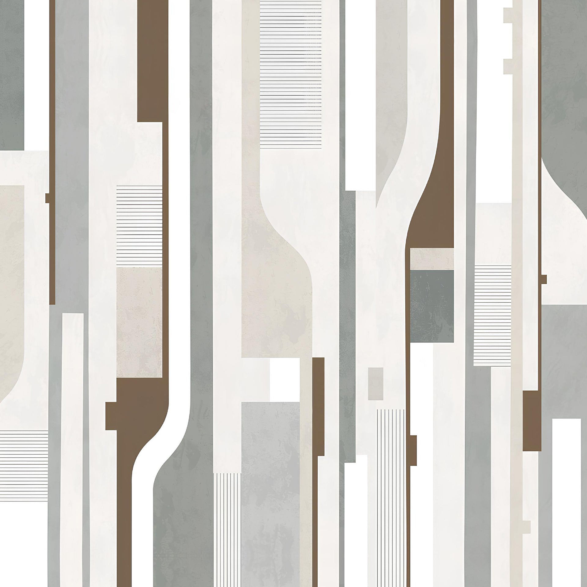 Neutral abstract wallpaper featuring vertical shapes, curves, and blocks in beige, gray, and brown. Modern, minimalist design suitable for walls, backgrounds, and contemporary interiors, adding texture and subtle rhythm.