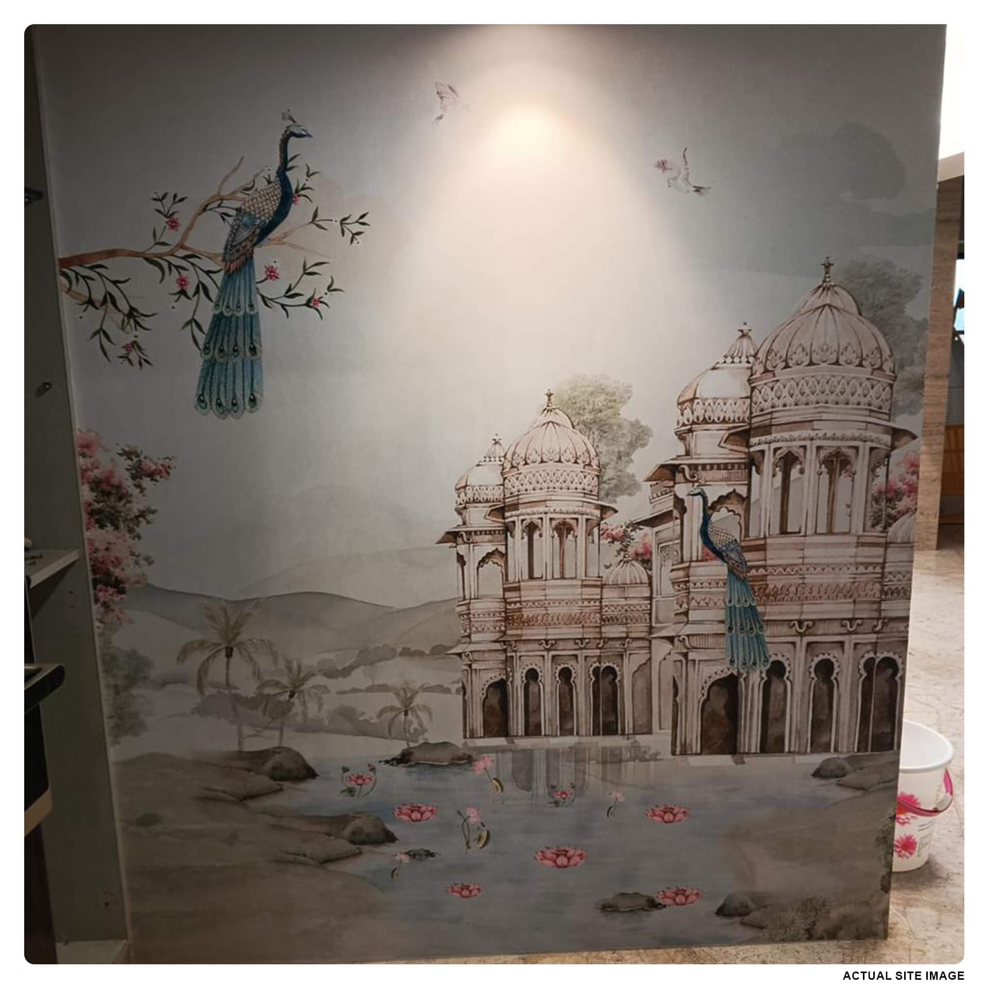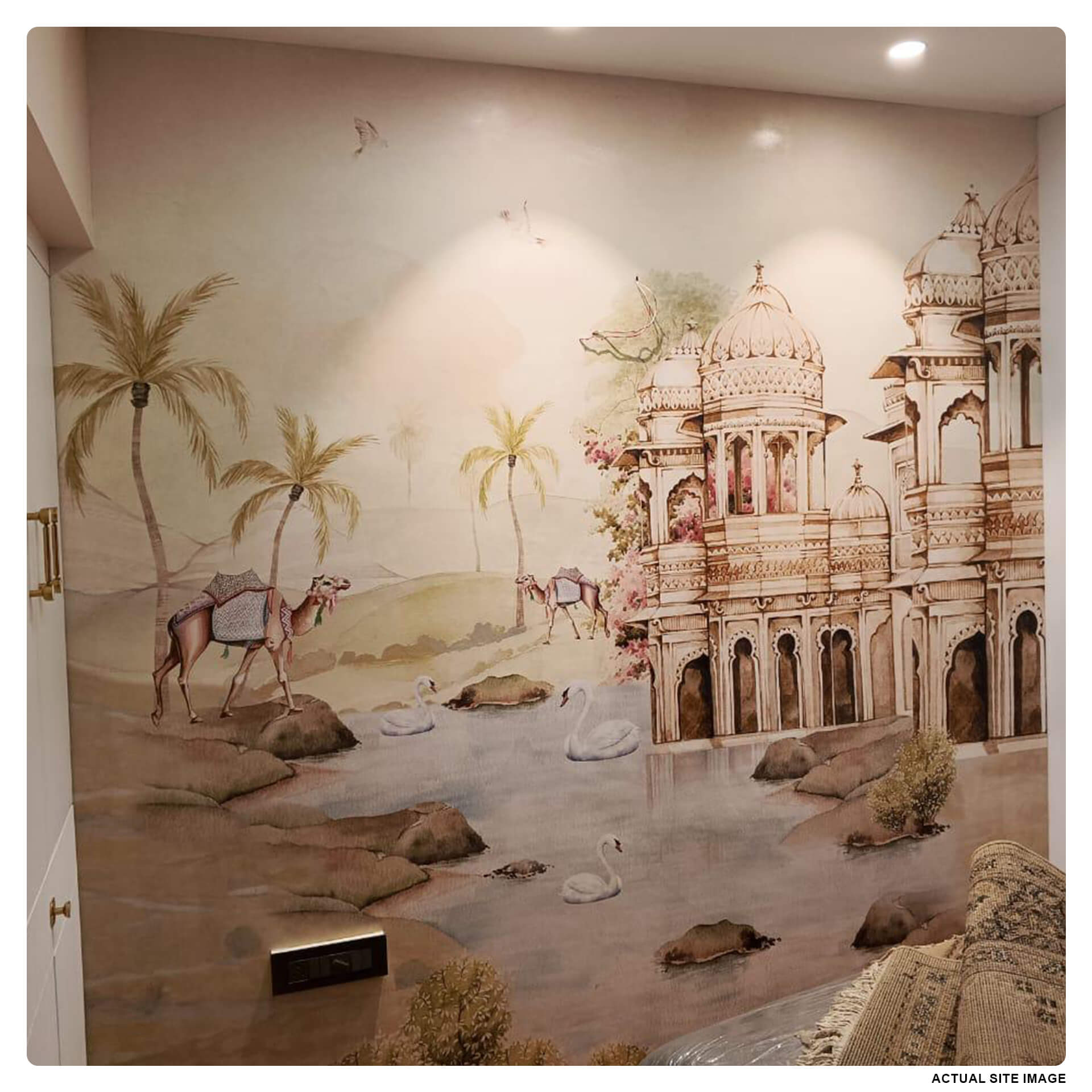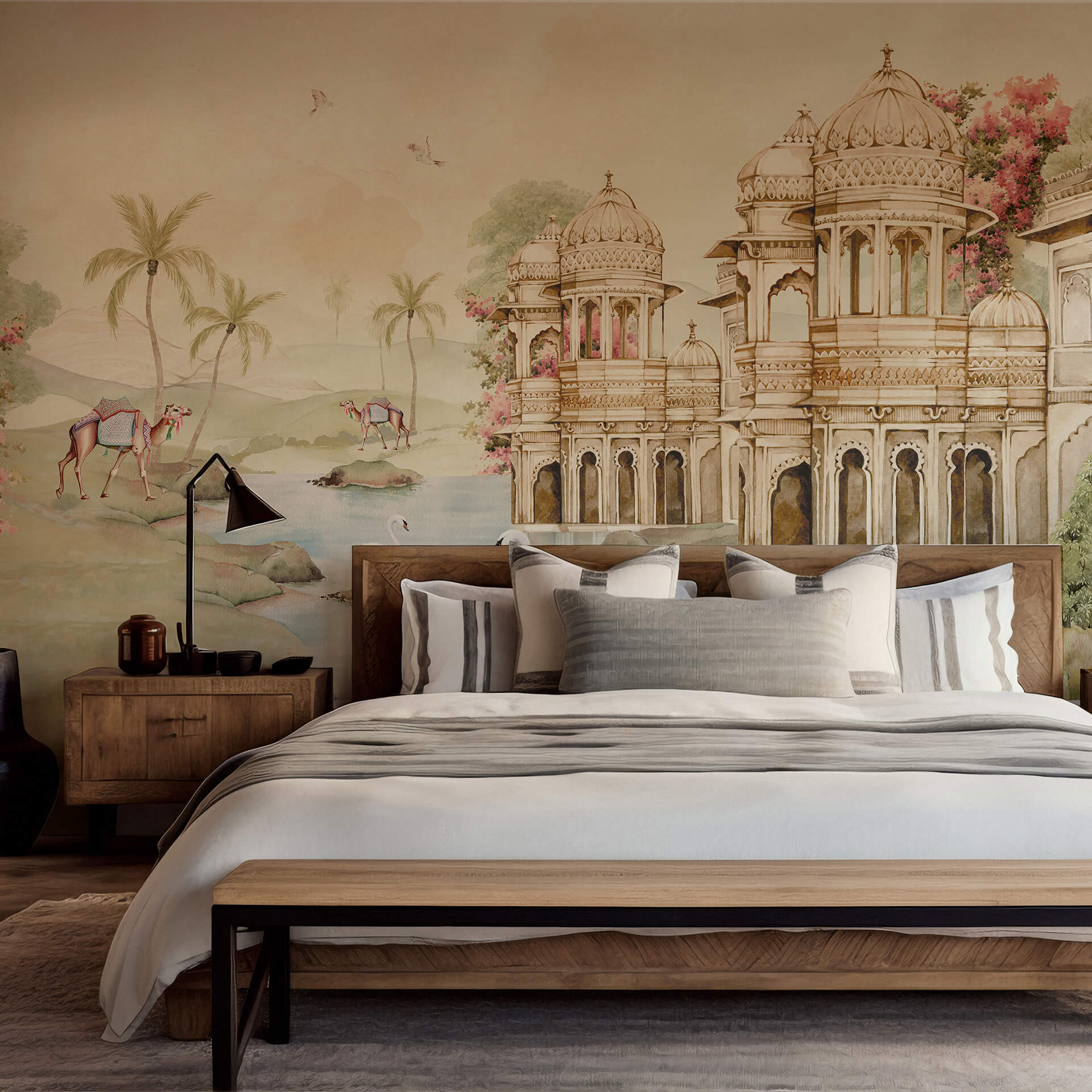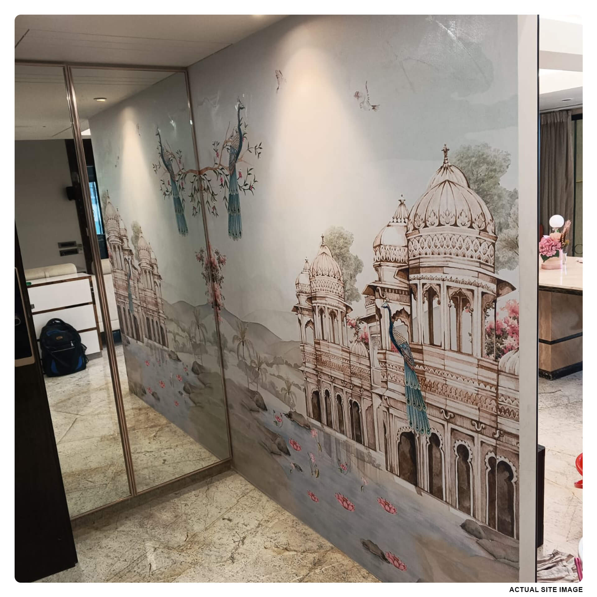 Indian Mahal Wall Mural Wallpaper, inspired by Indian architecture and majestic interiors of India’s royal palaces. This traditional Indian wallpaper is perfect for living room, traditional hotels, cultural spaces, traditional homes.