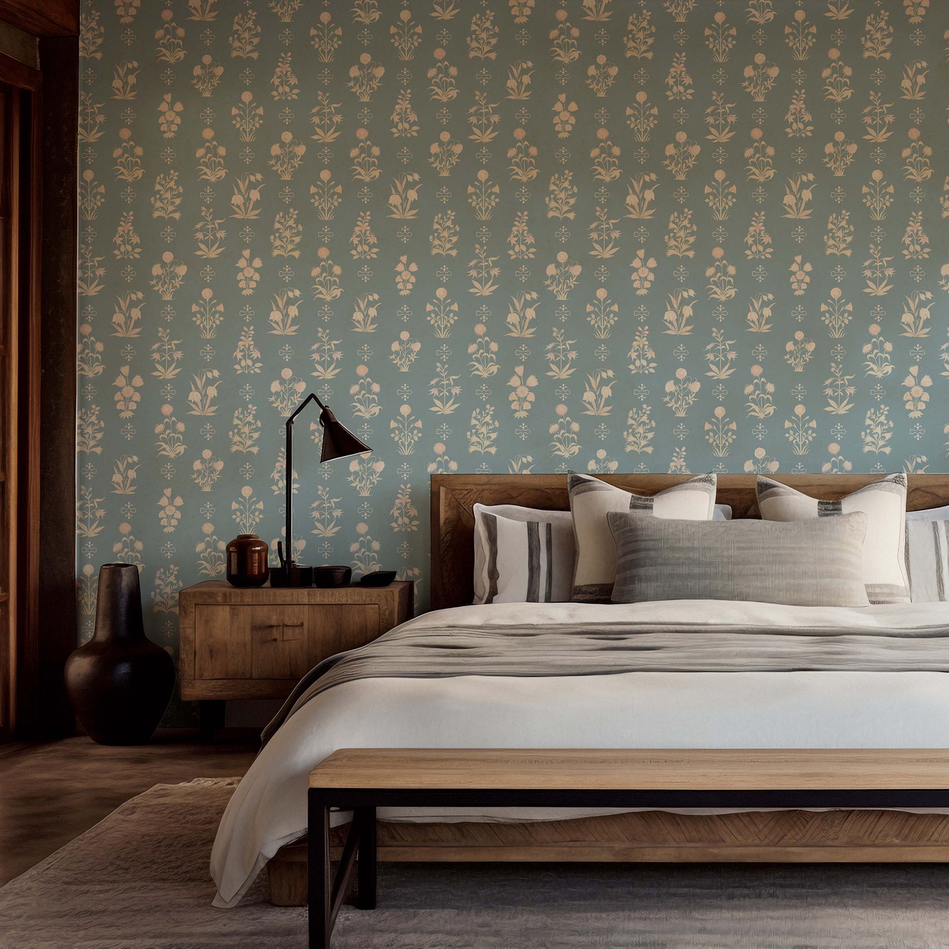 Elegant Vintage Floral Wallpaper on Soft Blue Background is ideal or living rooms, bedrooms, or feature walls, it adds a touch of romance and luxury to any space. Space of Joy's custom wallpaper are printed on premium quality, easy-to-install material, this wallpaper offers both beauty and durability for long-lasting style.