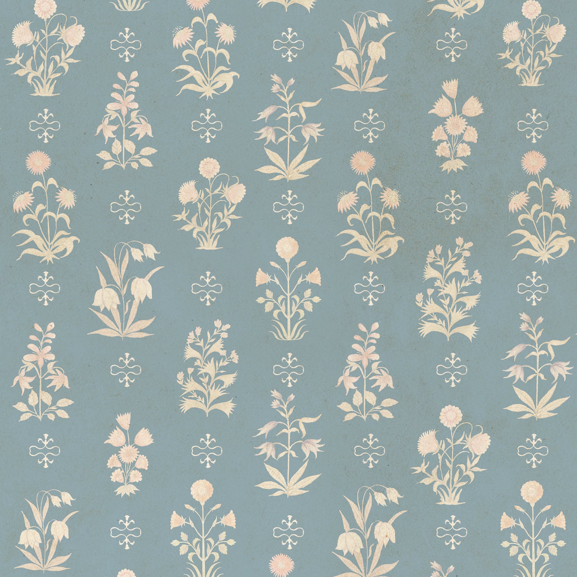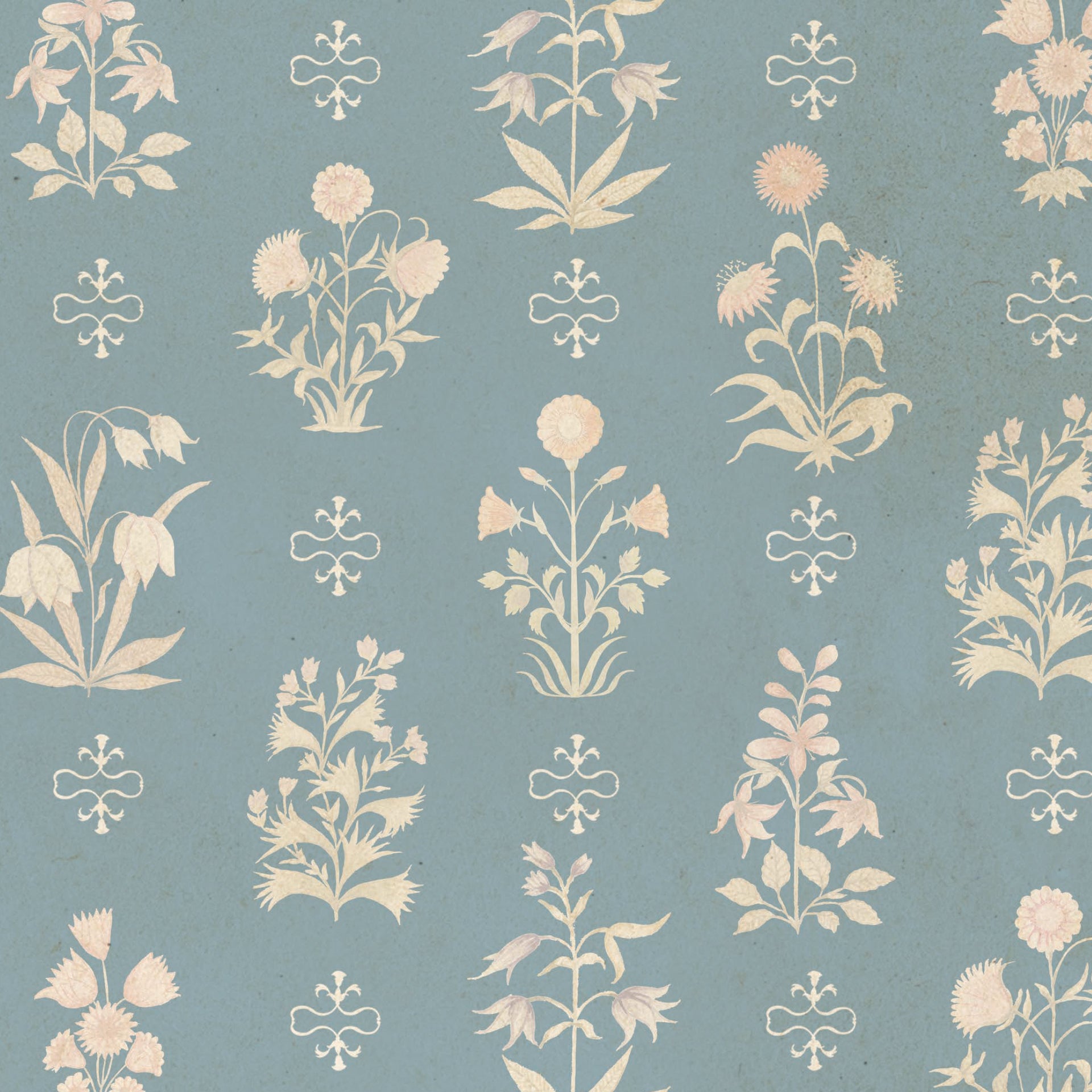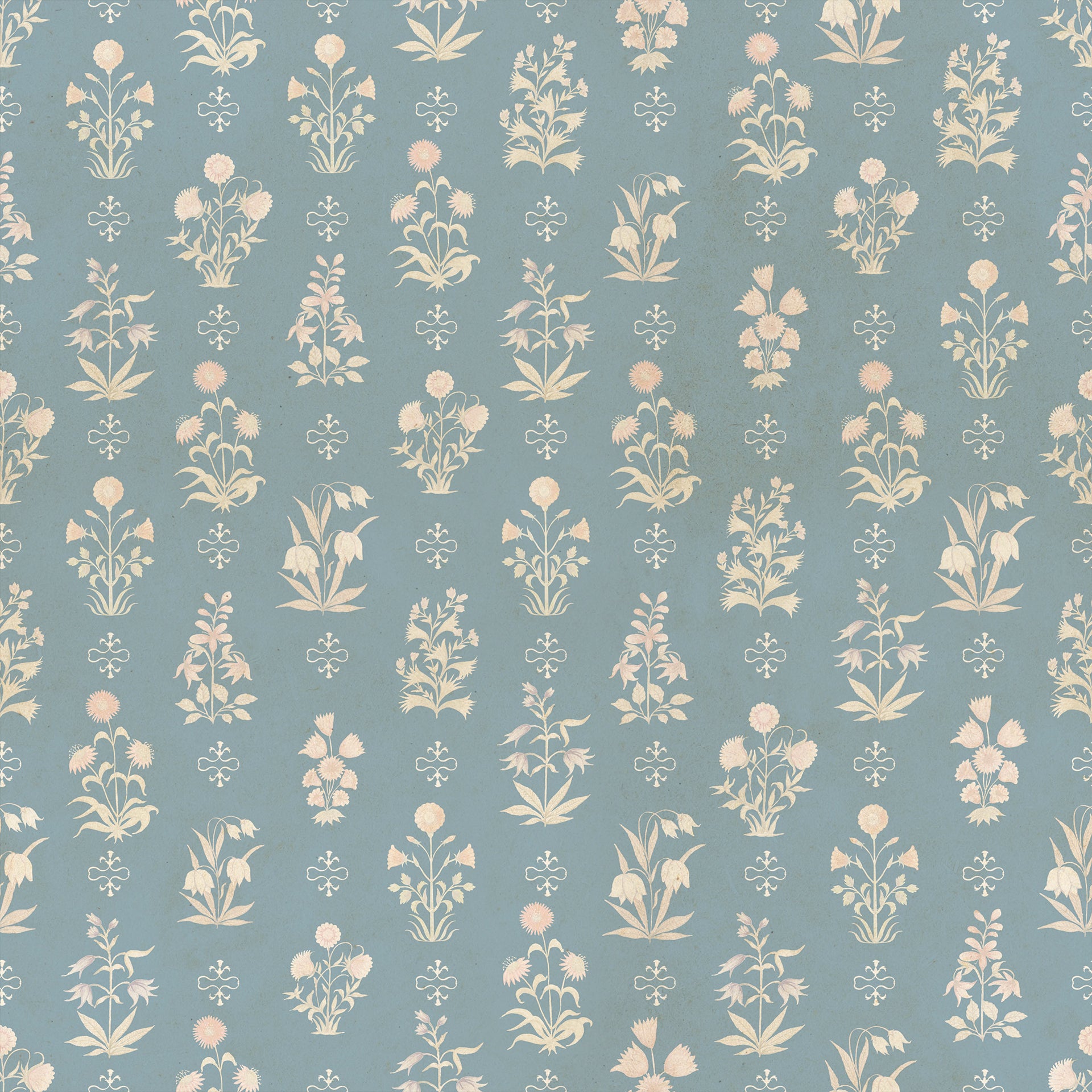 Vintage Garden Blue: Elegant Vintage Floral Pattern On Soft Blue Background