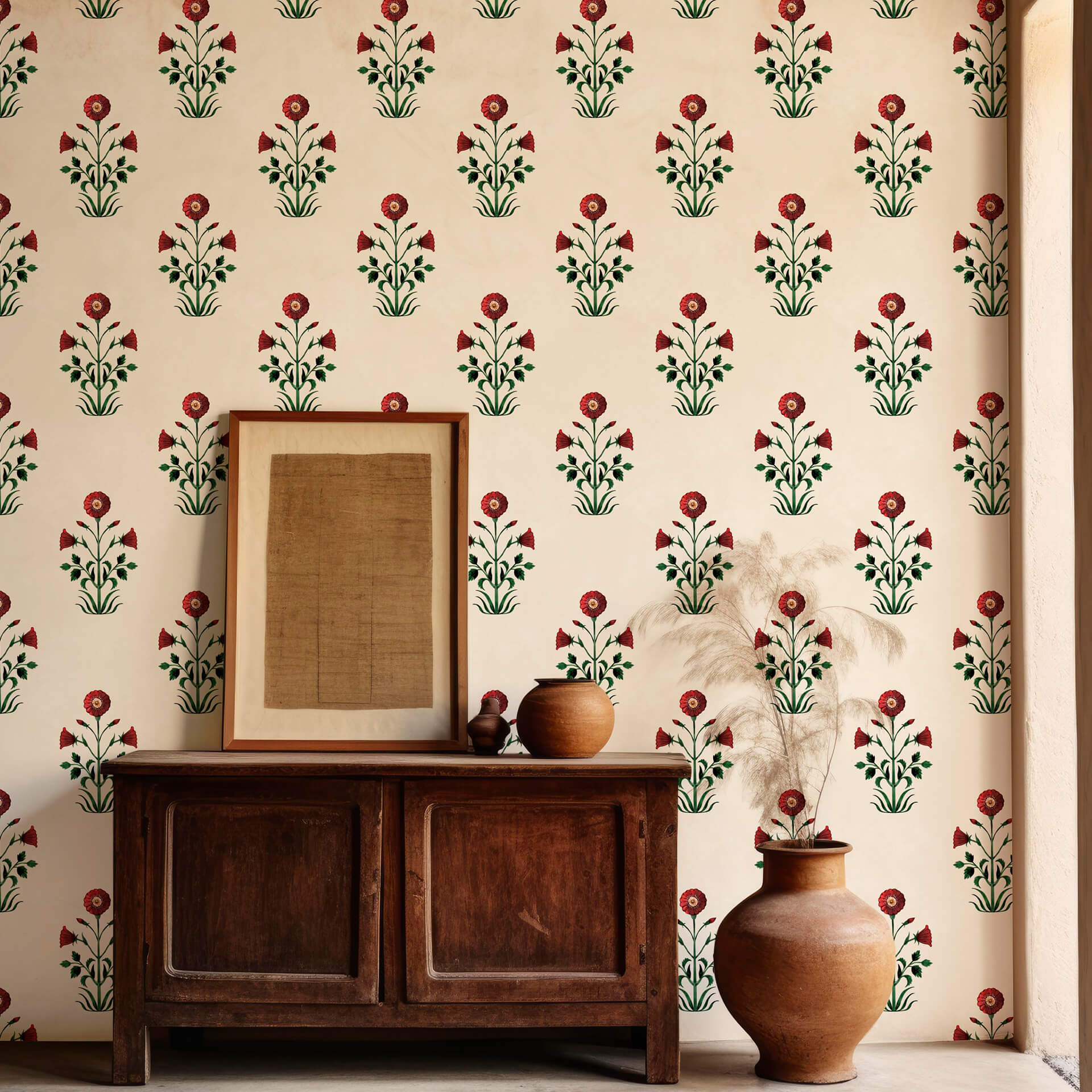 Laal Ishq: Mughal Flower Motif Wallpaper