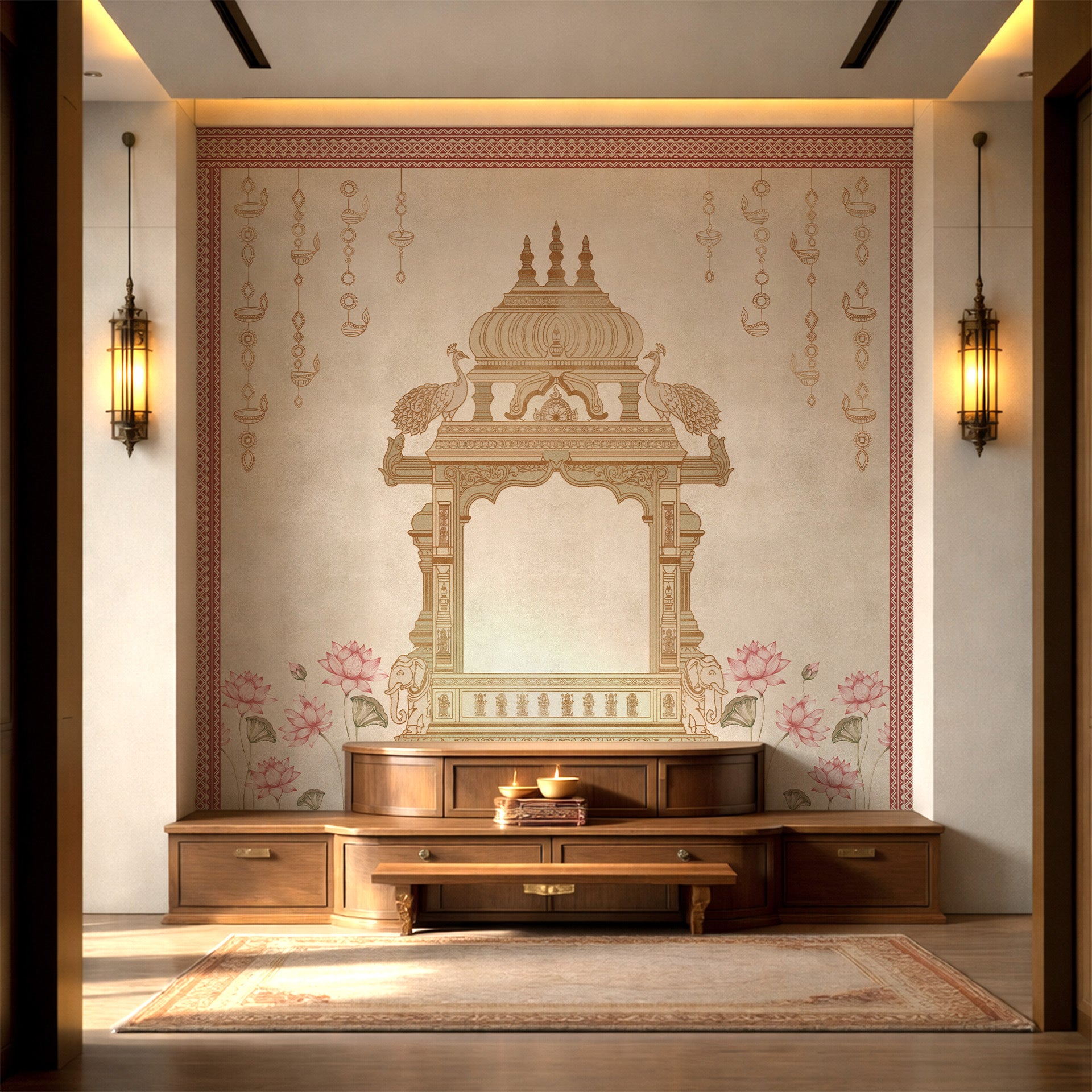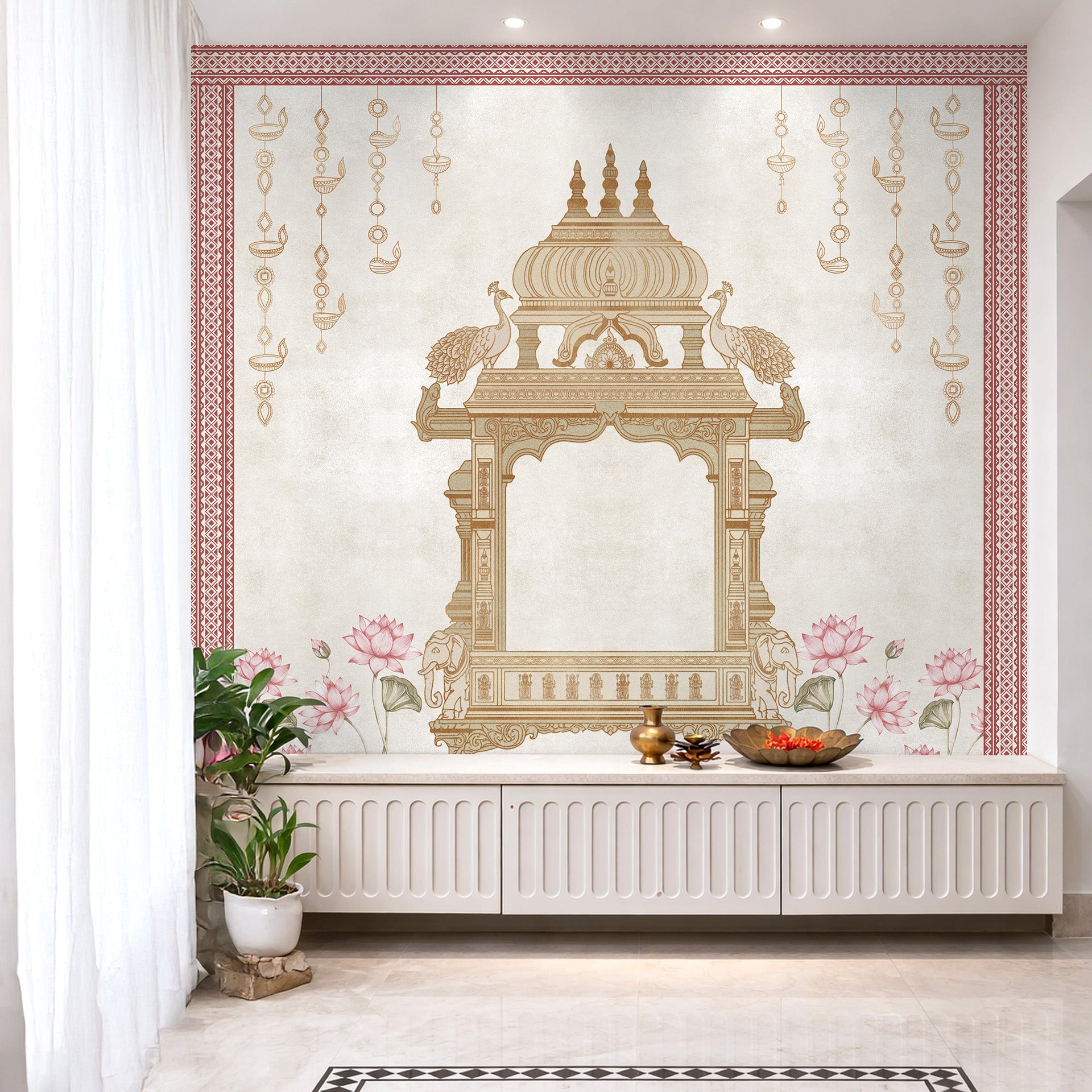 Sacred Frame: Ornamental Temple Frame With Lotus and Peacocks in Traditional Style
