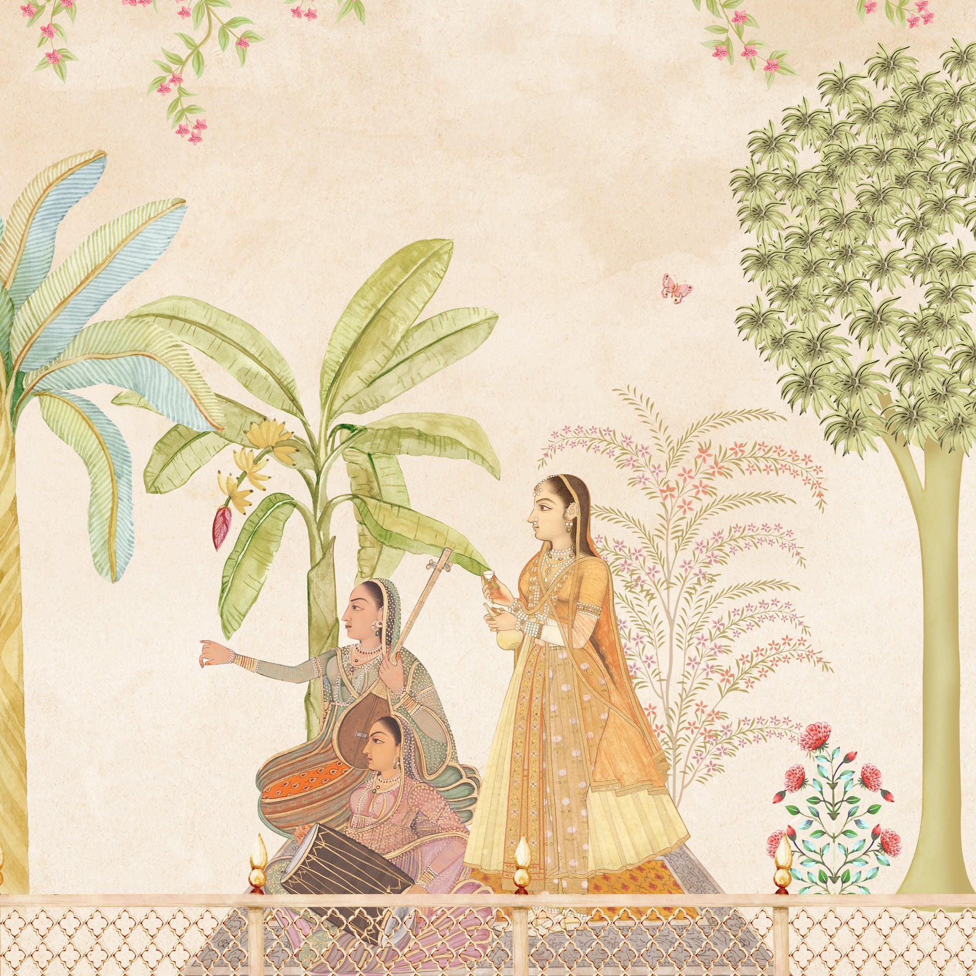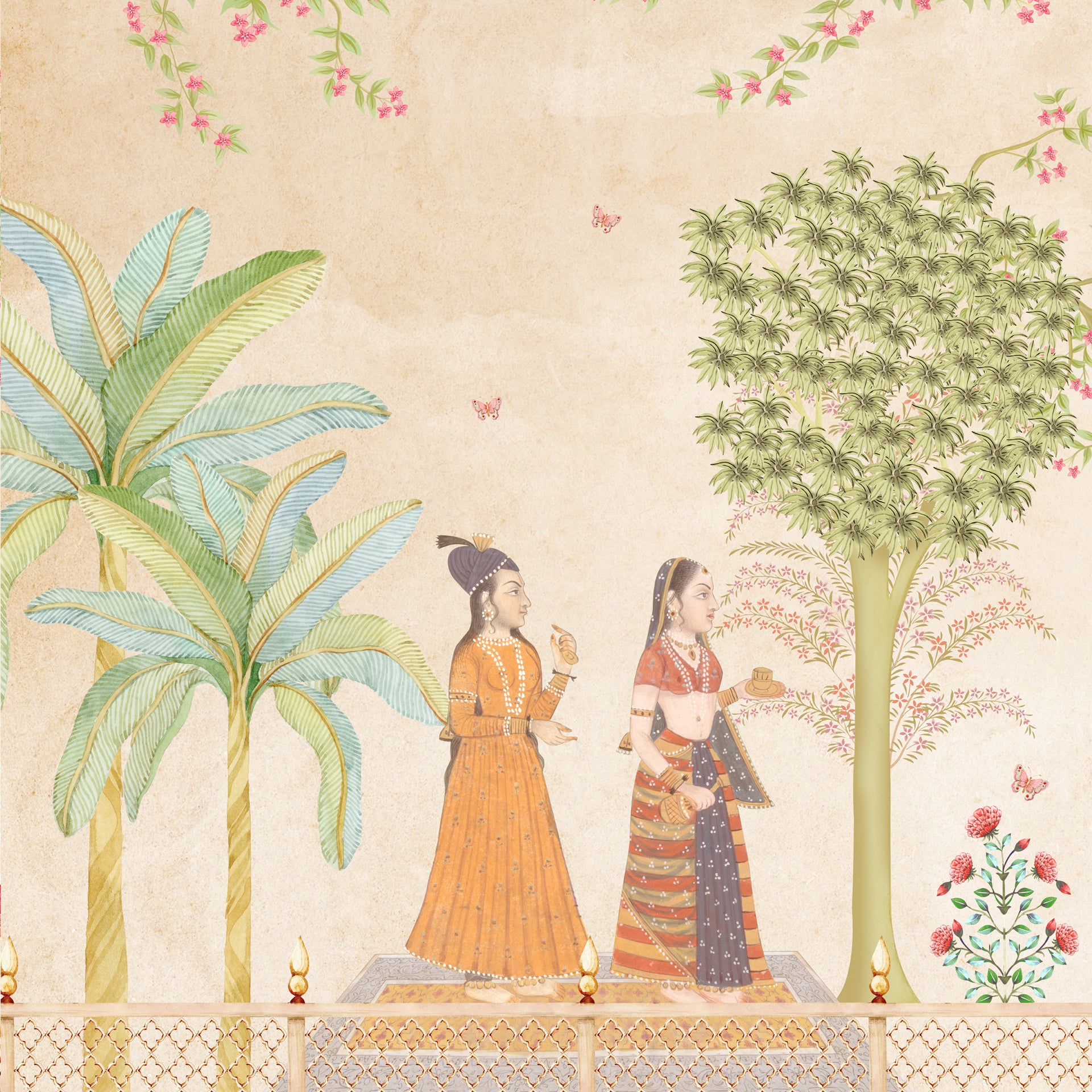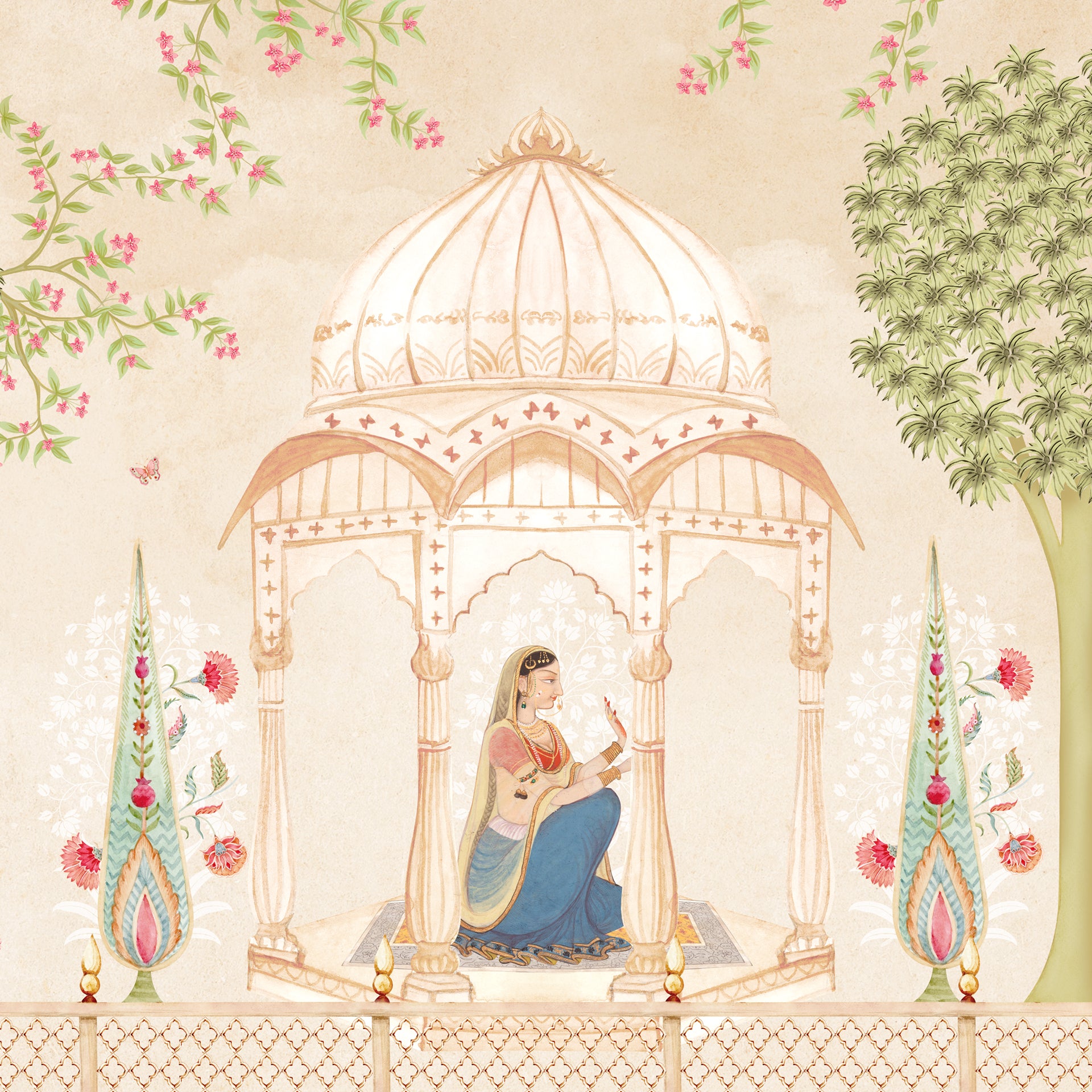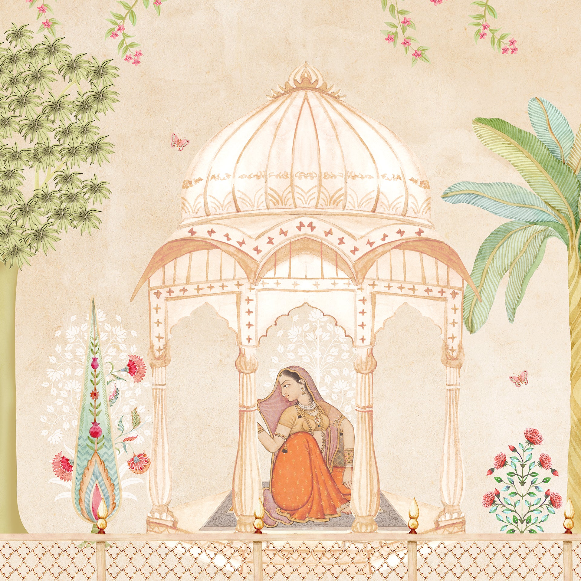 Shahi-Mehfil: Decorative Indian Garden Scene With Gazebos, Palm Trees & Royals