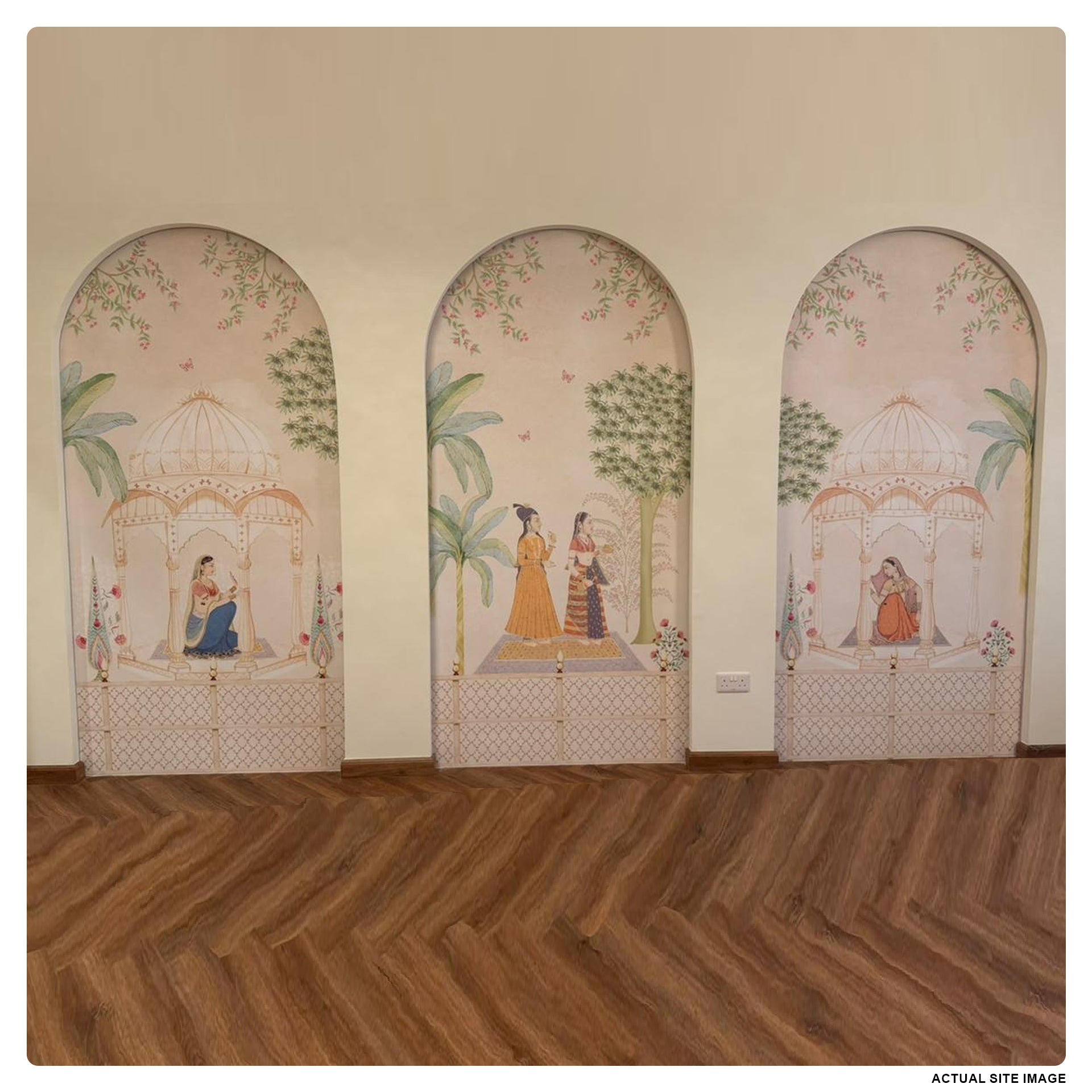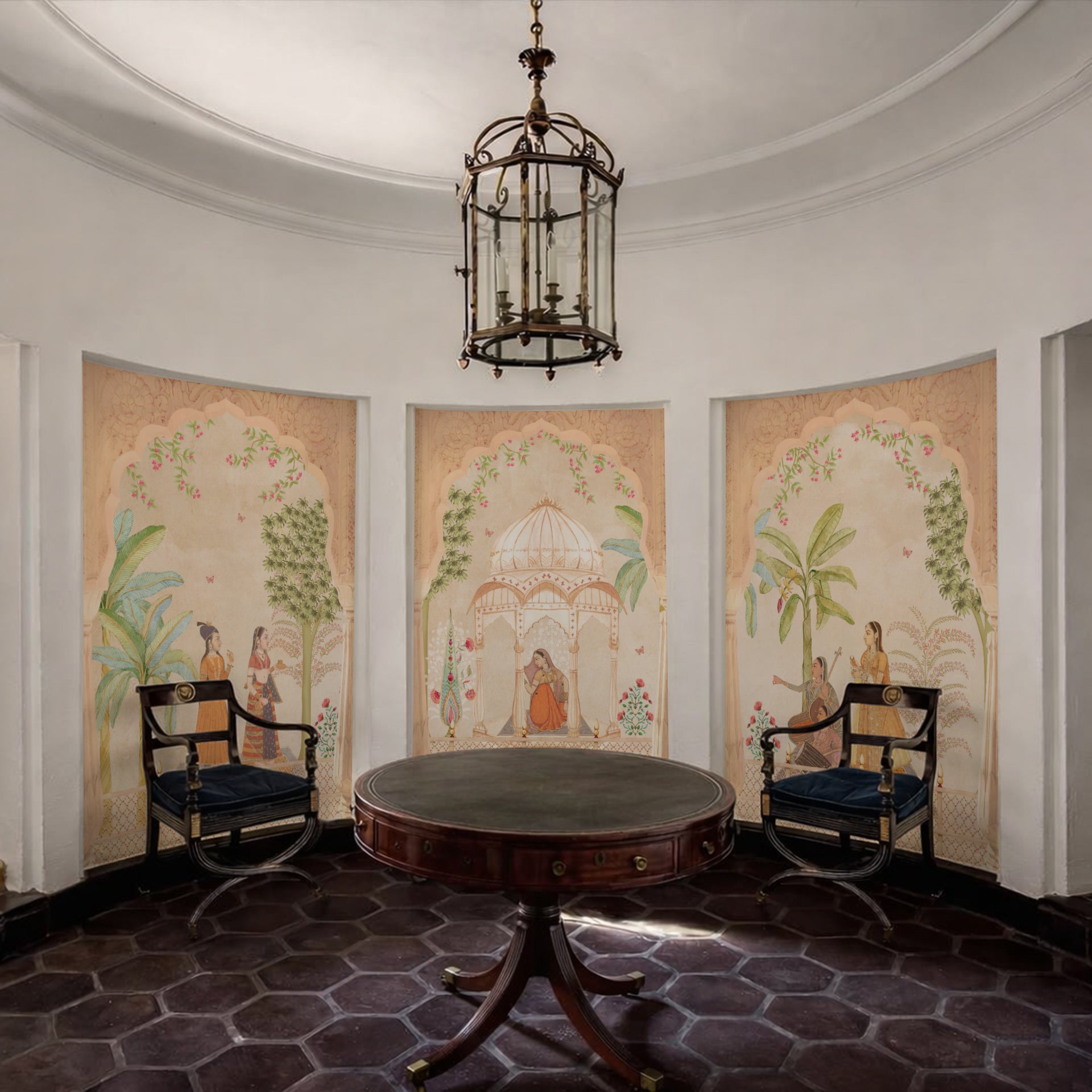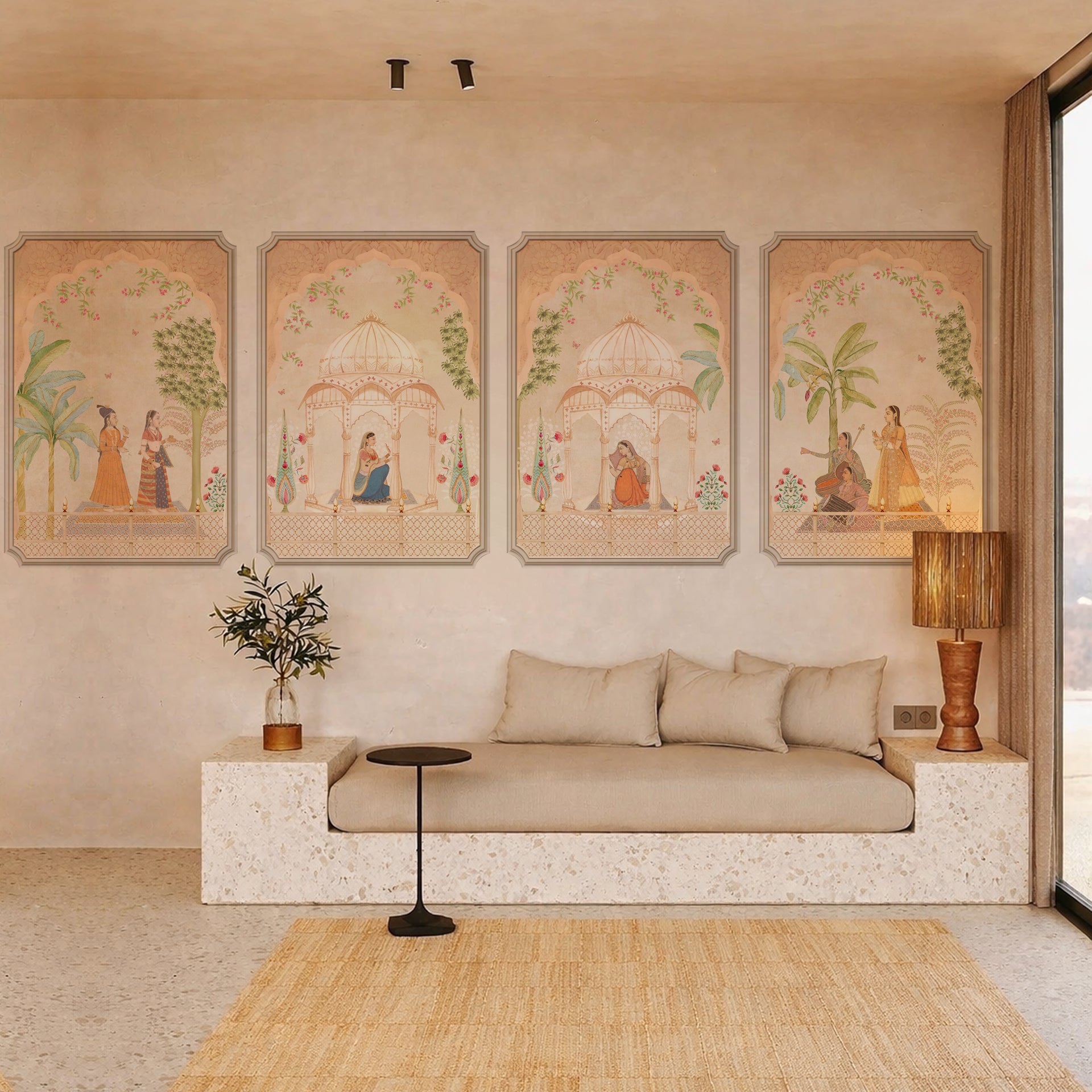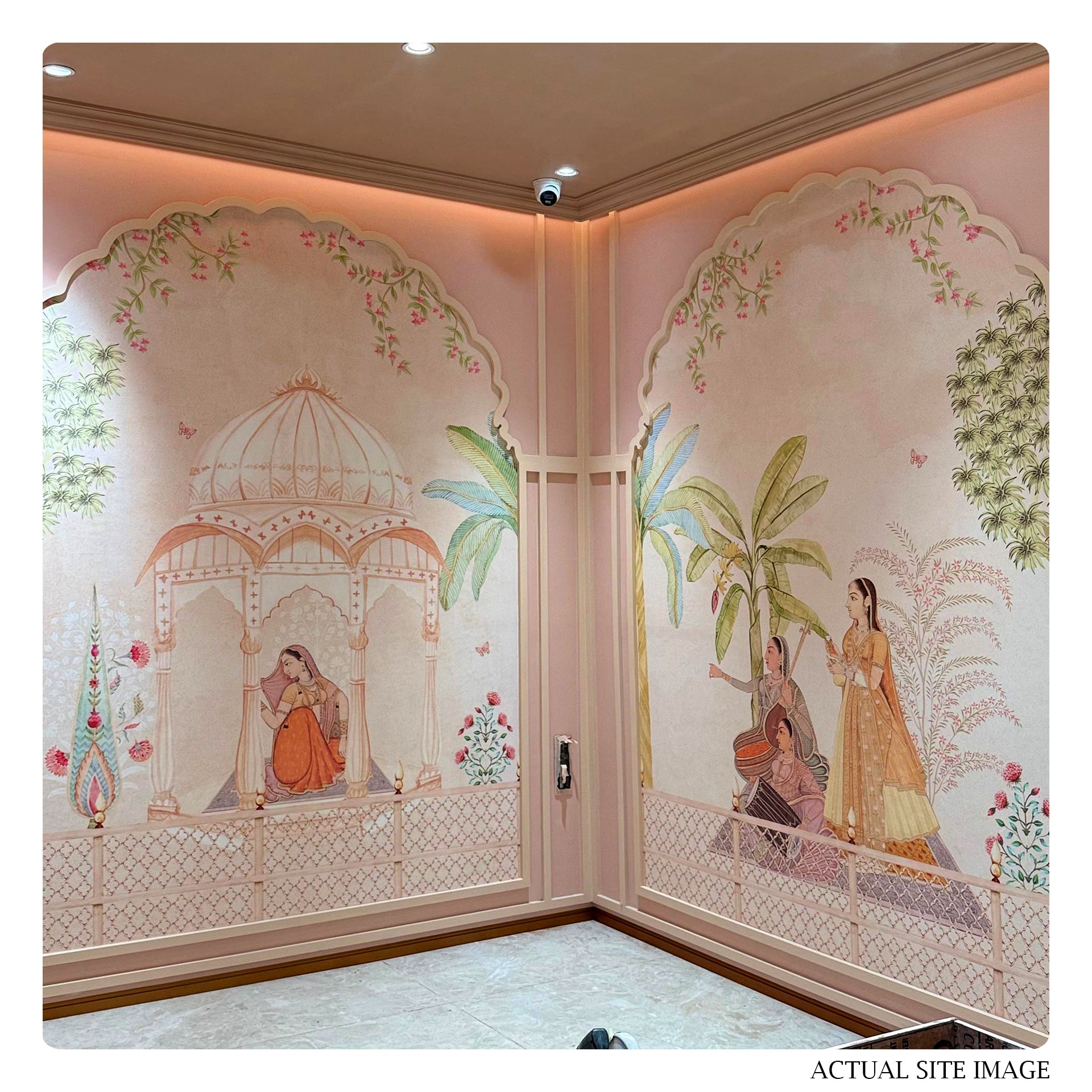 Shahi-Mehfil: Decorative Indian Garden Scene With Gazebos, Palm Trees & Royals