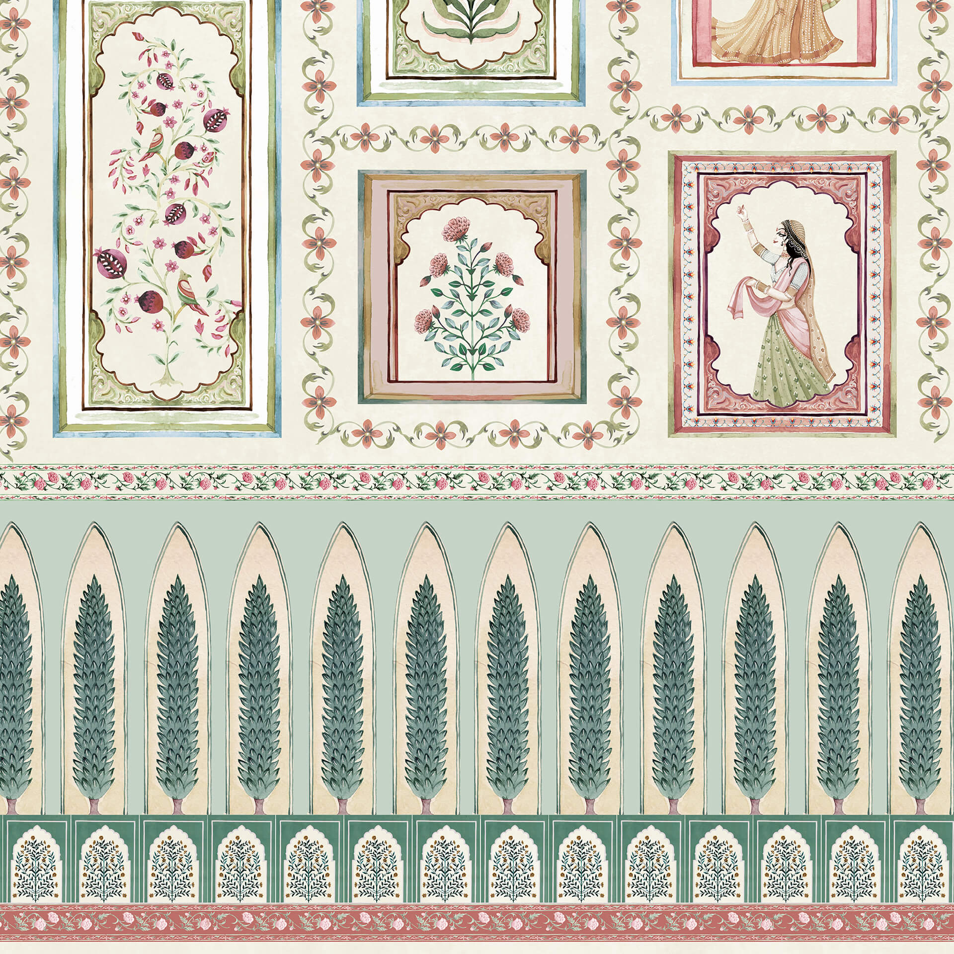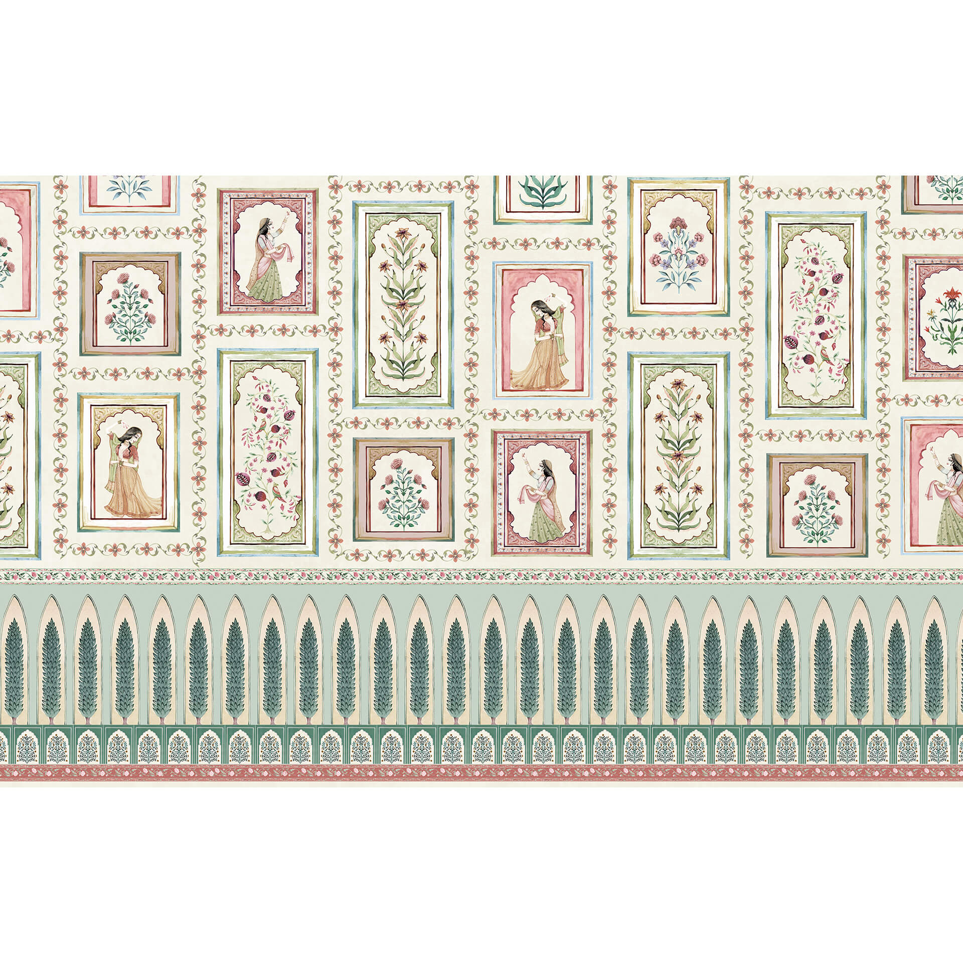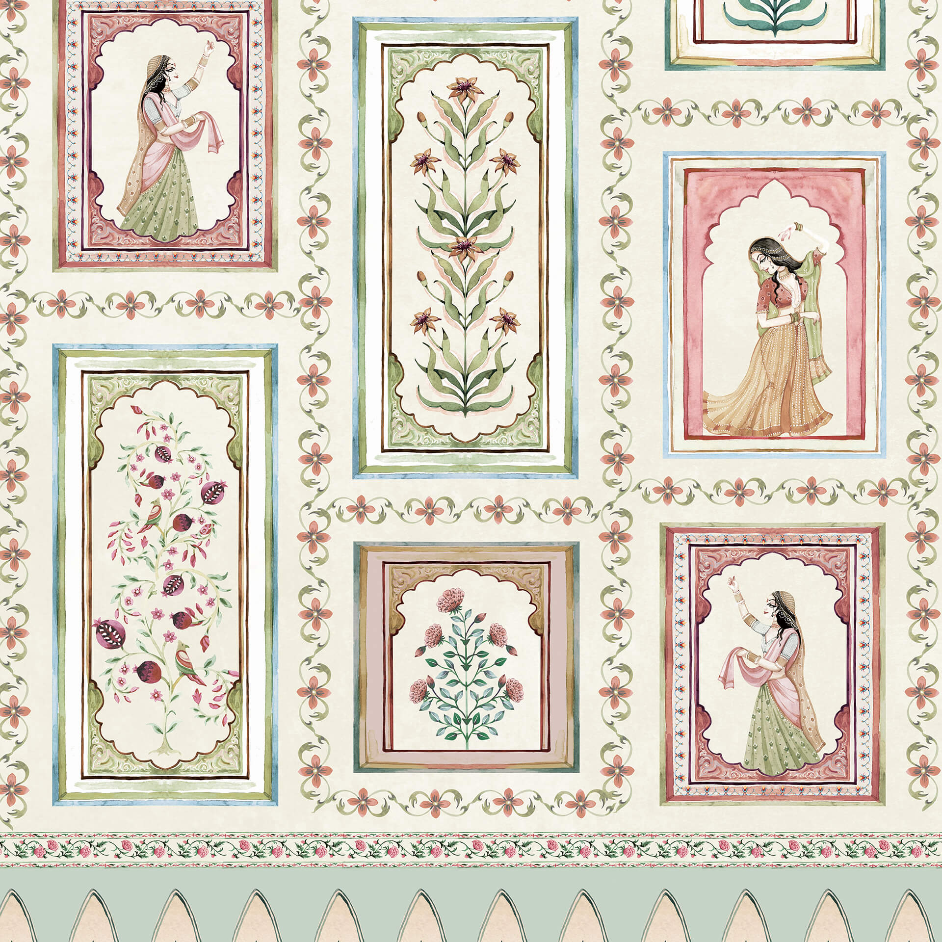 The Royal Darbar: Indian Darbar Wallpaper with Indian Women & Floral Motifs