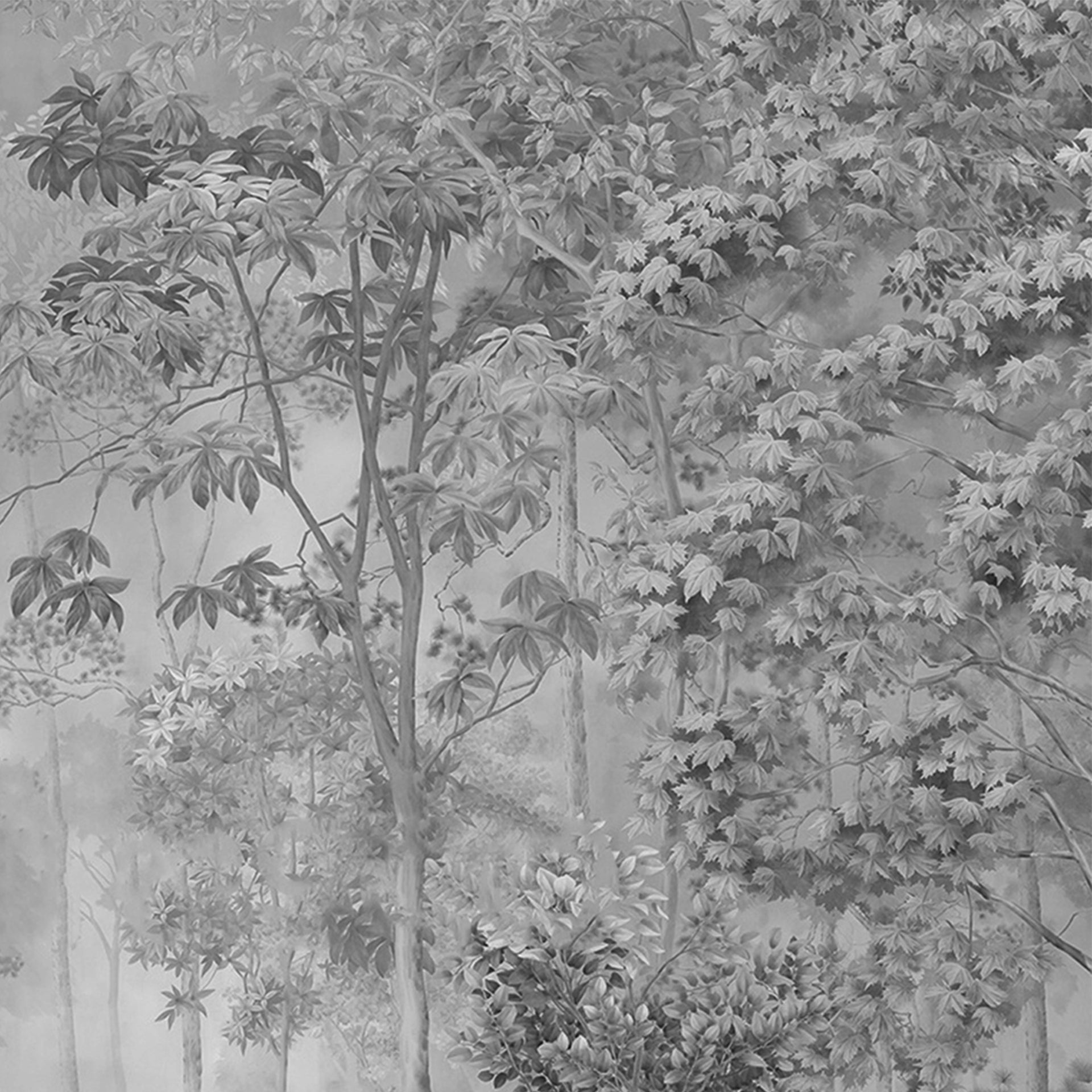 Black and White Rainforest Wallpaper, featuring intricate tropical motifs in a monochrome palette. Perfect for bedrooms, offices, or ceiling entry areas, this wallpaper adds depth and sophistication while evoking the serenity of the jungle.