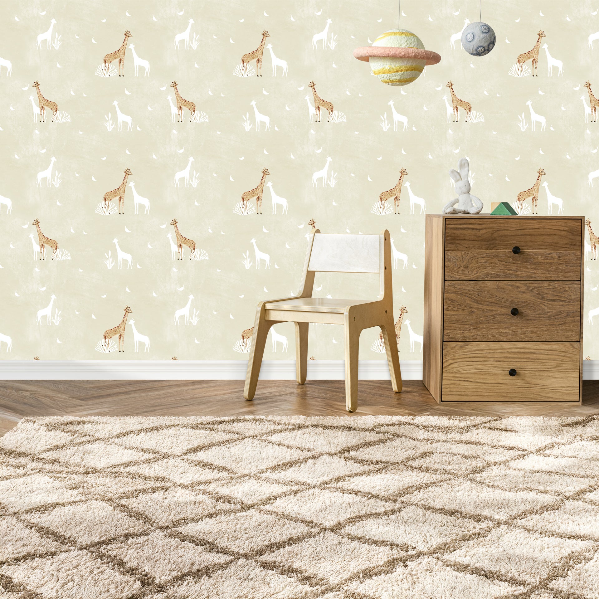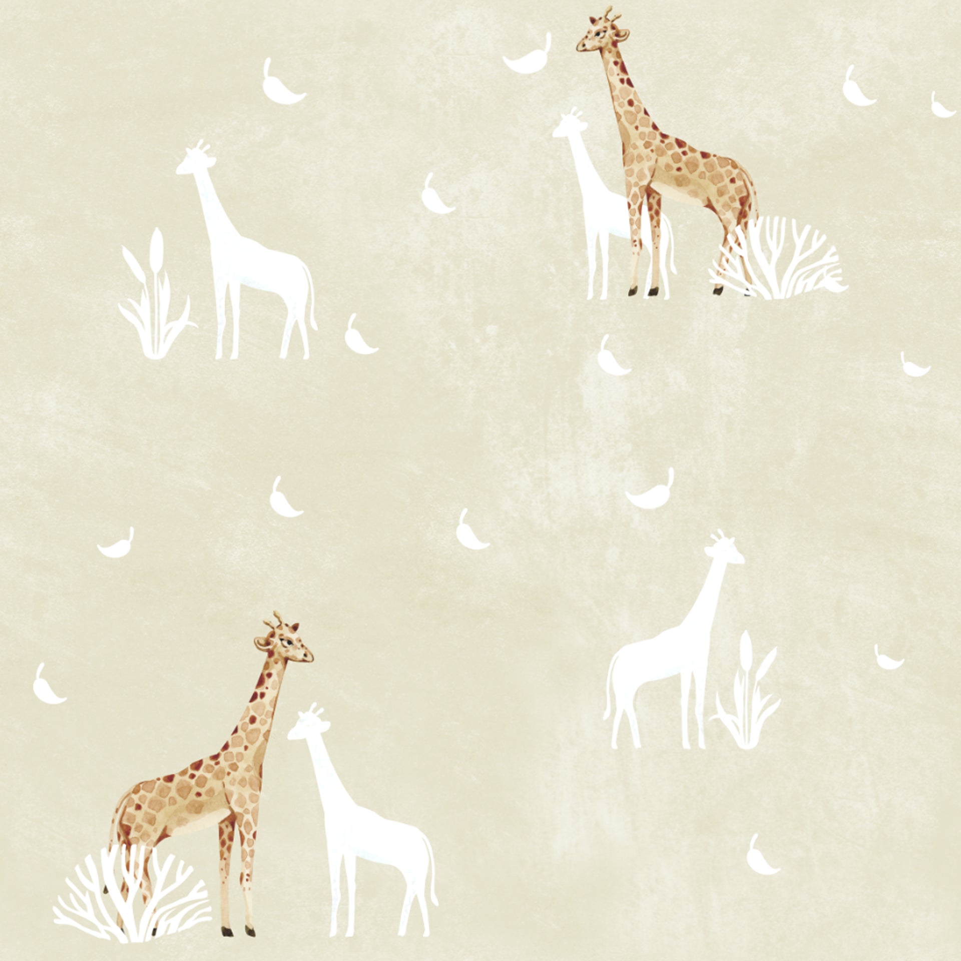 Tranquil Giraffe Galore wallpaper, With its graceful giraffes set against a light beige backdrop, naturally inspired atmosphere.