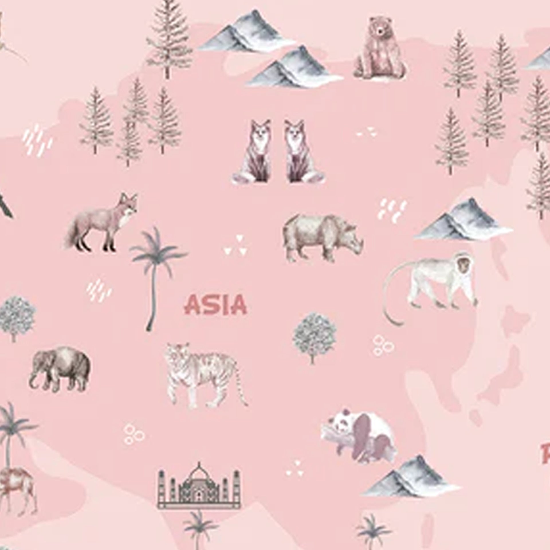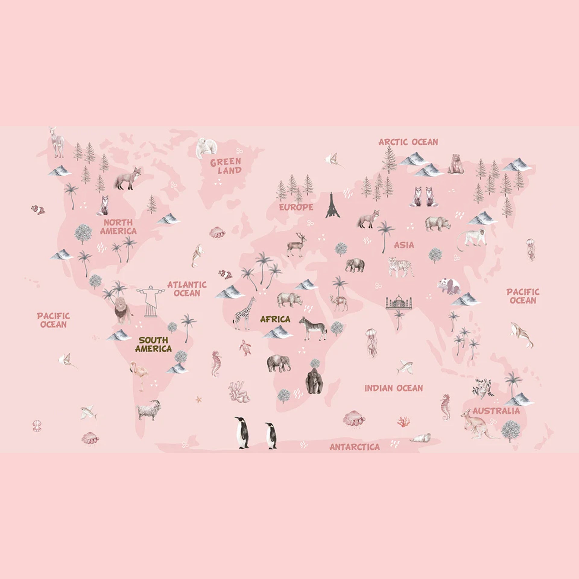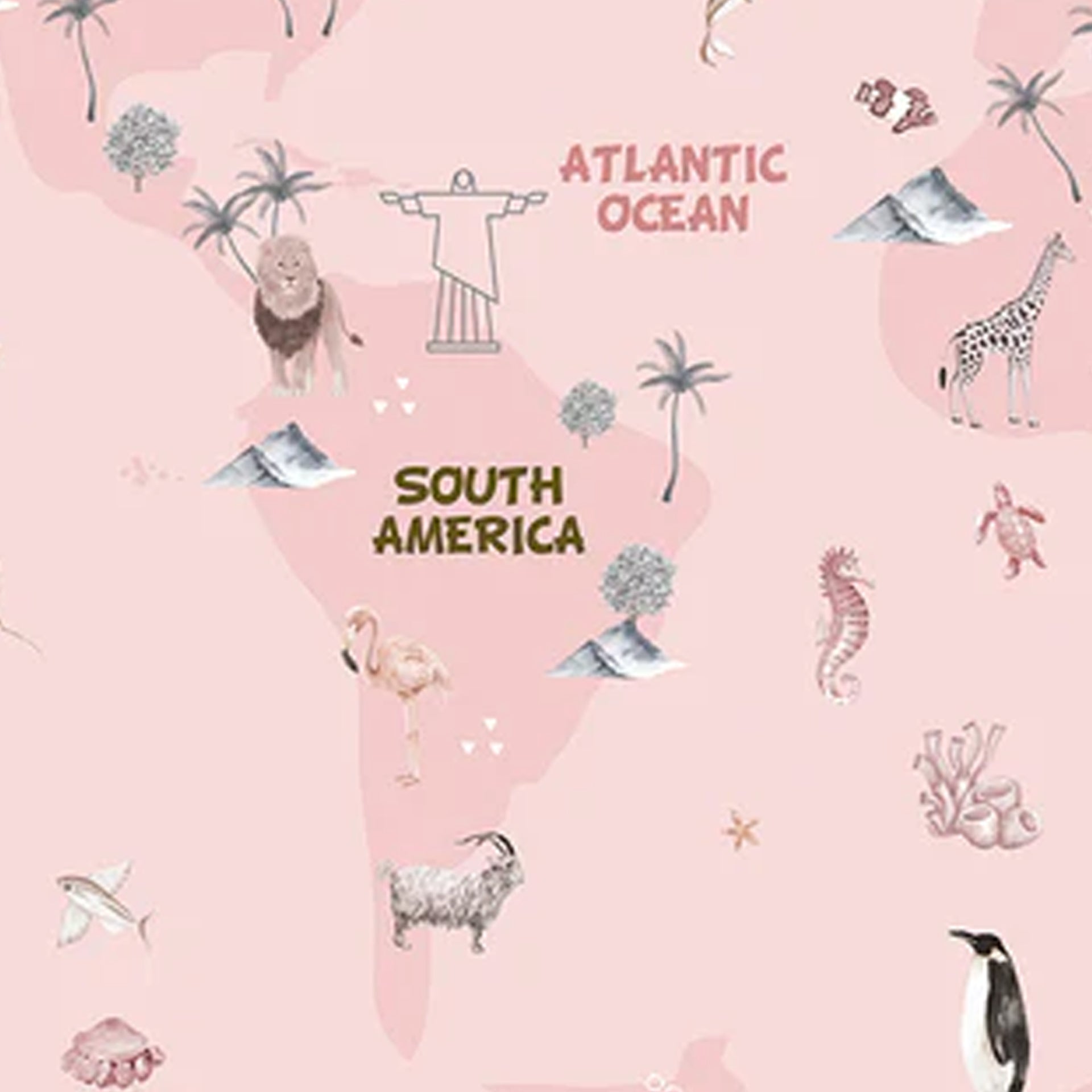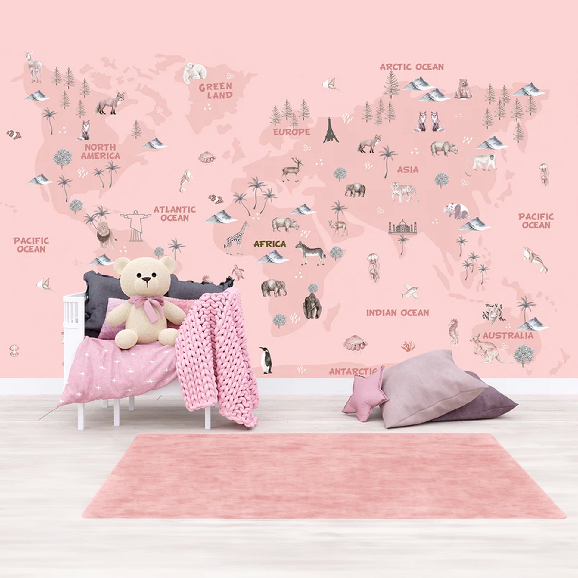 Peach Adventure: World Map Wallpaper For Baby Girl Bedroom