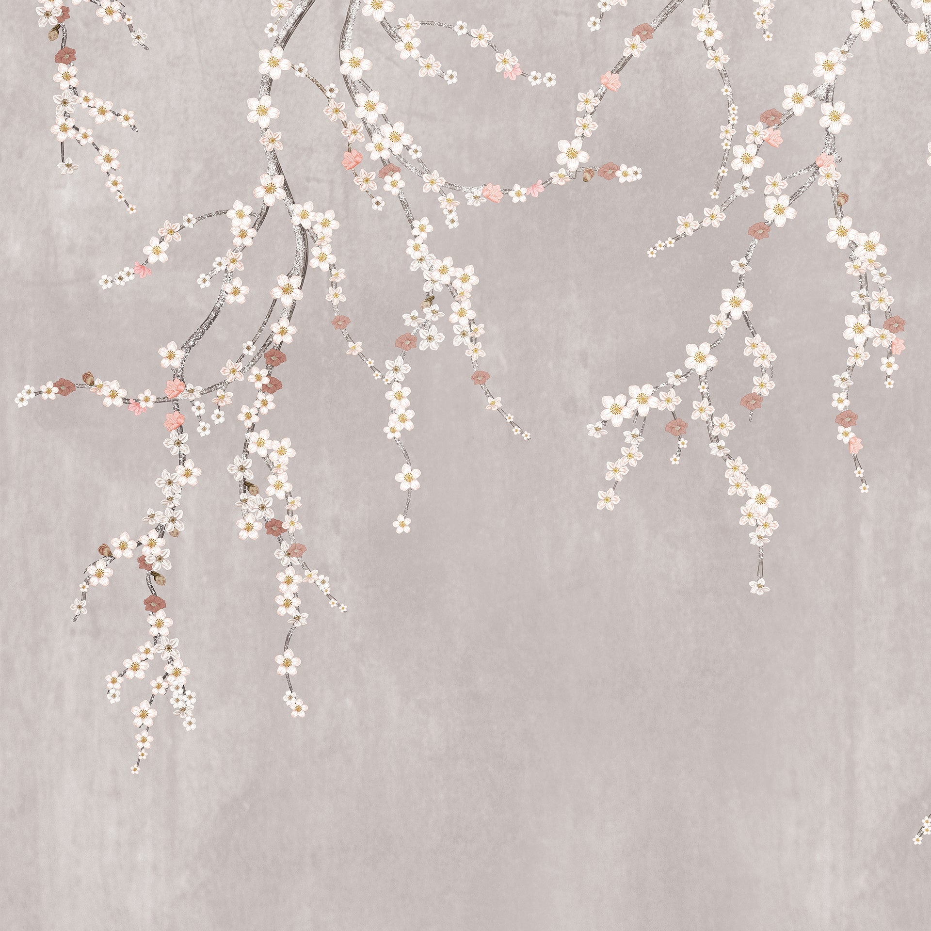 Chinoiseries Cherry Blossoms wallpaper in soft and muted background-sample