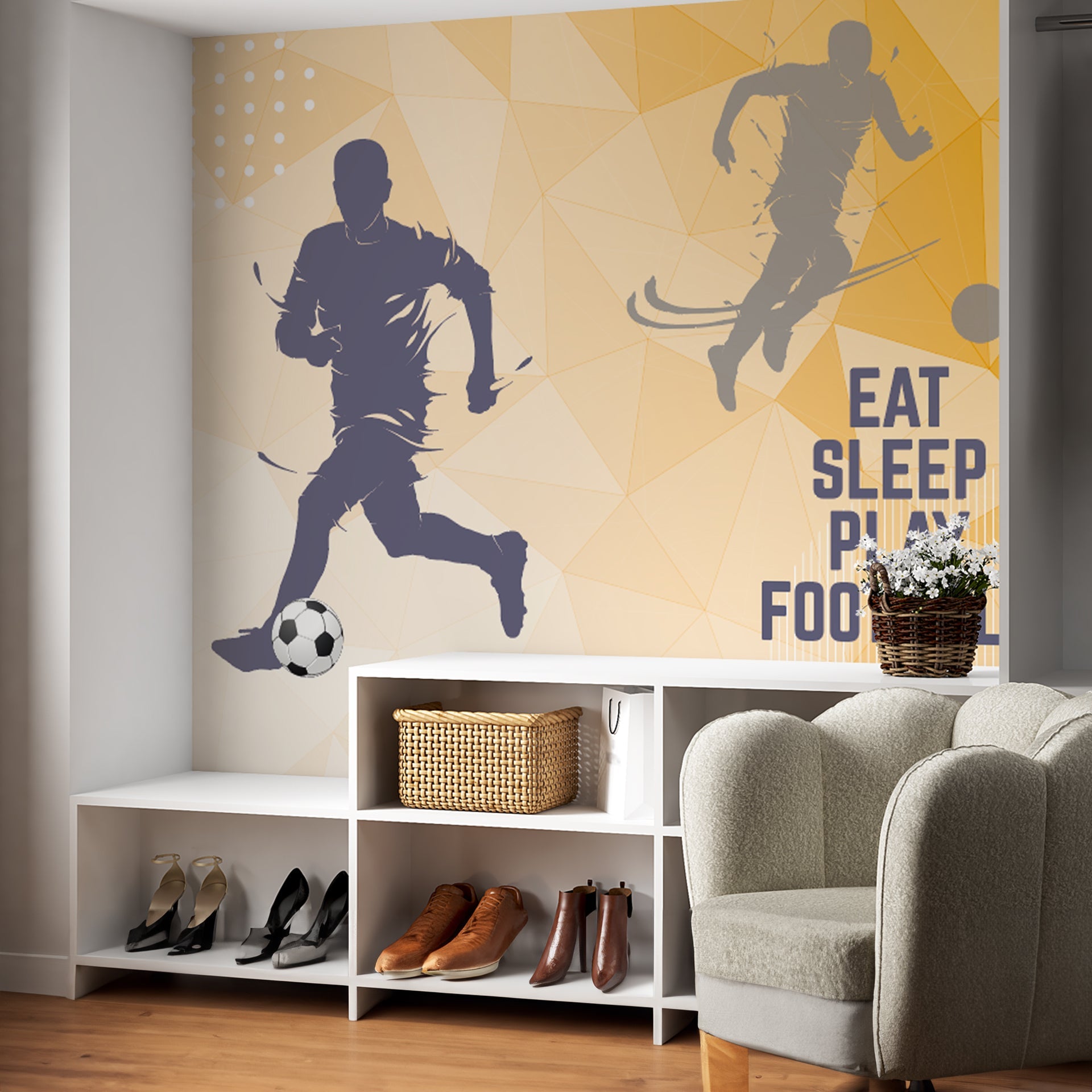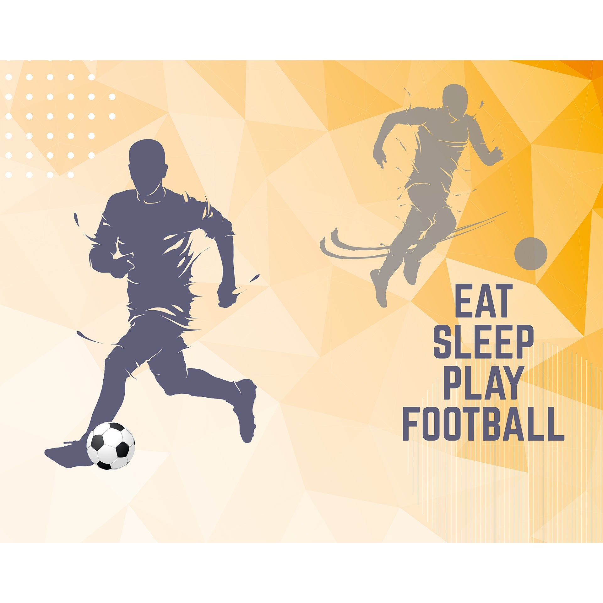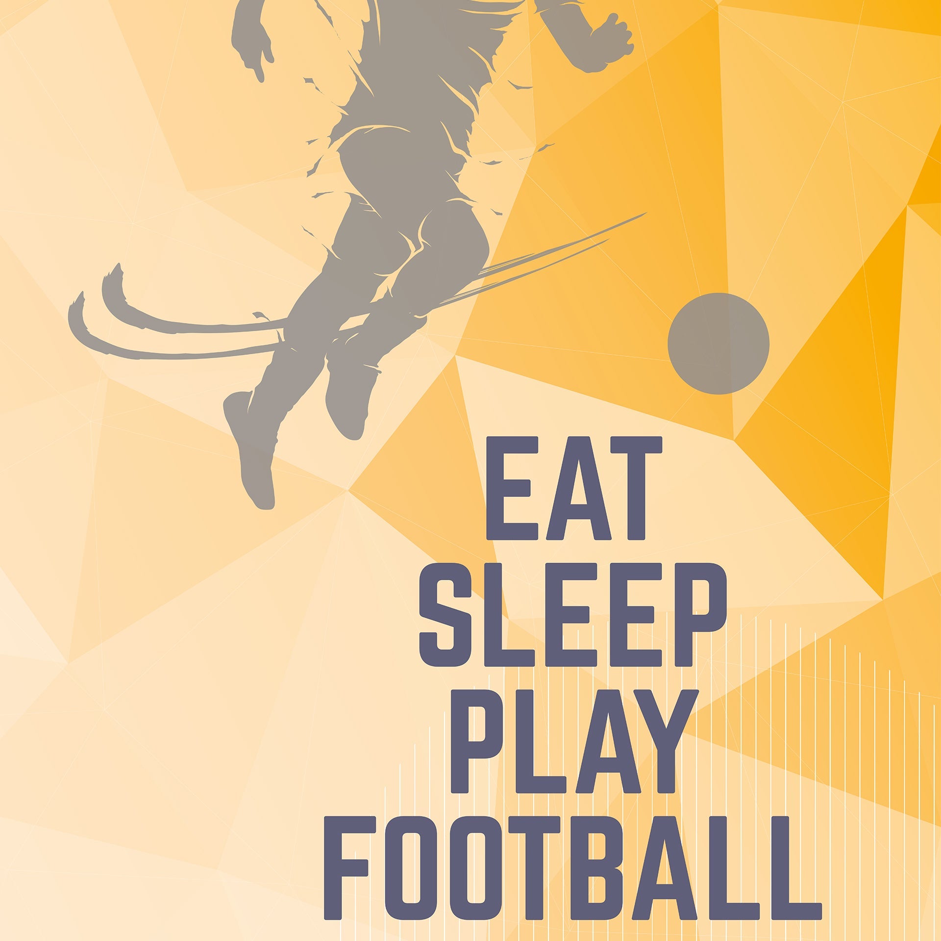 Illustration of two football players in action, highlighting energy and passion. Text reads "Eat Sleep Play Football," underscoring the dedication to the sport.