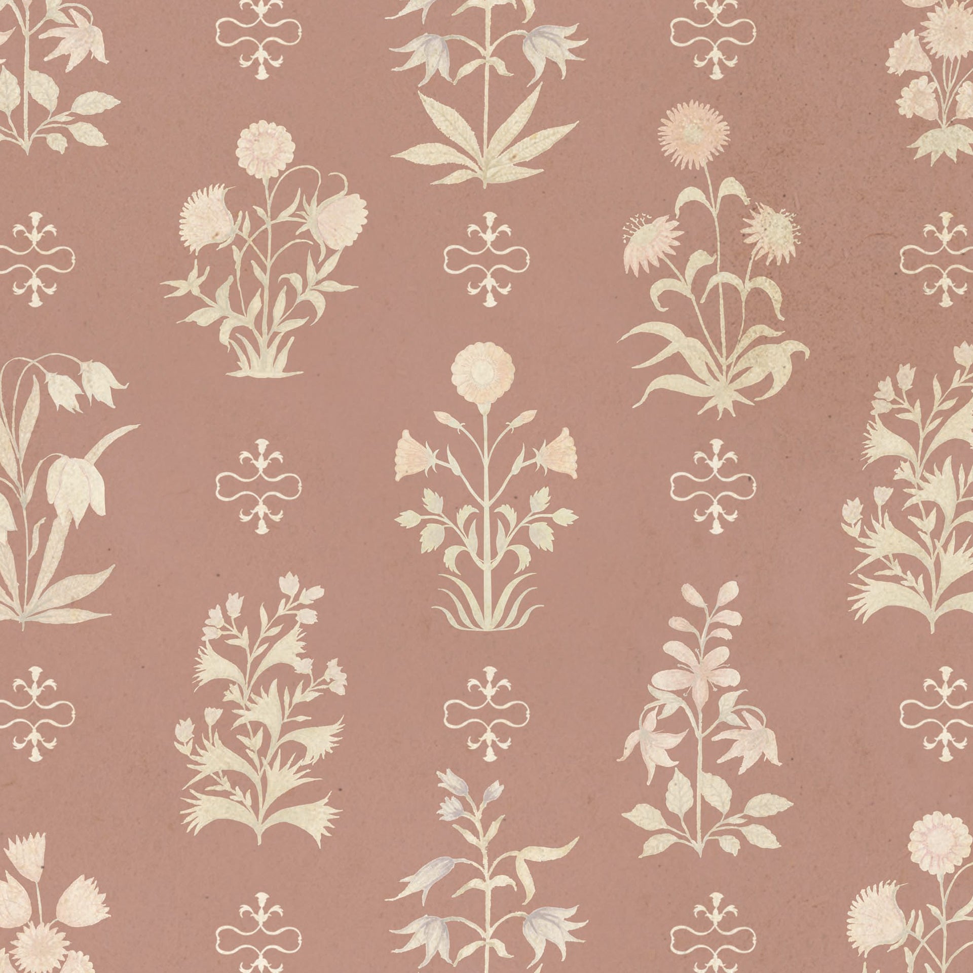 Vintage Garden Pink: Classic Vintage Floral Wallpaper on Muted Pink Background