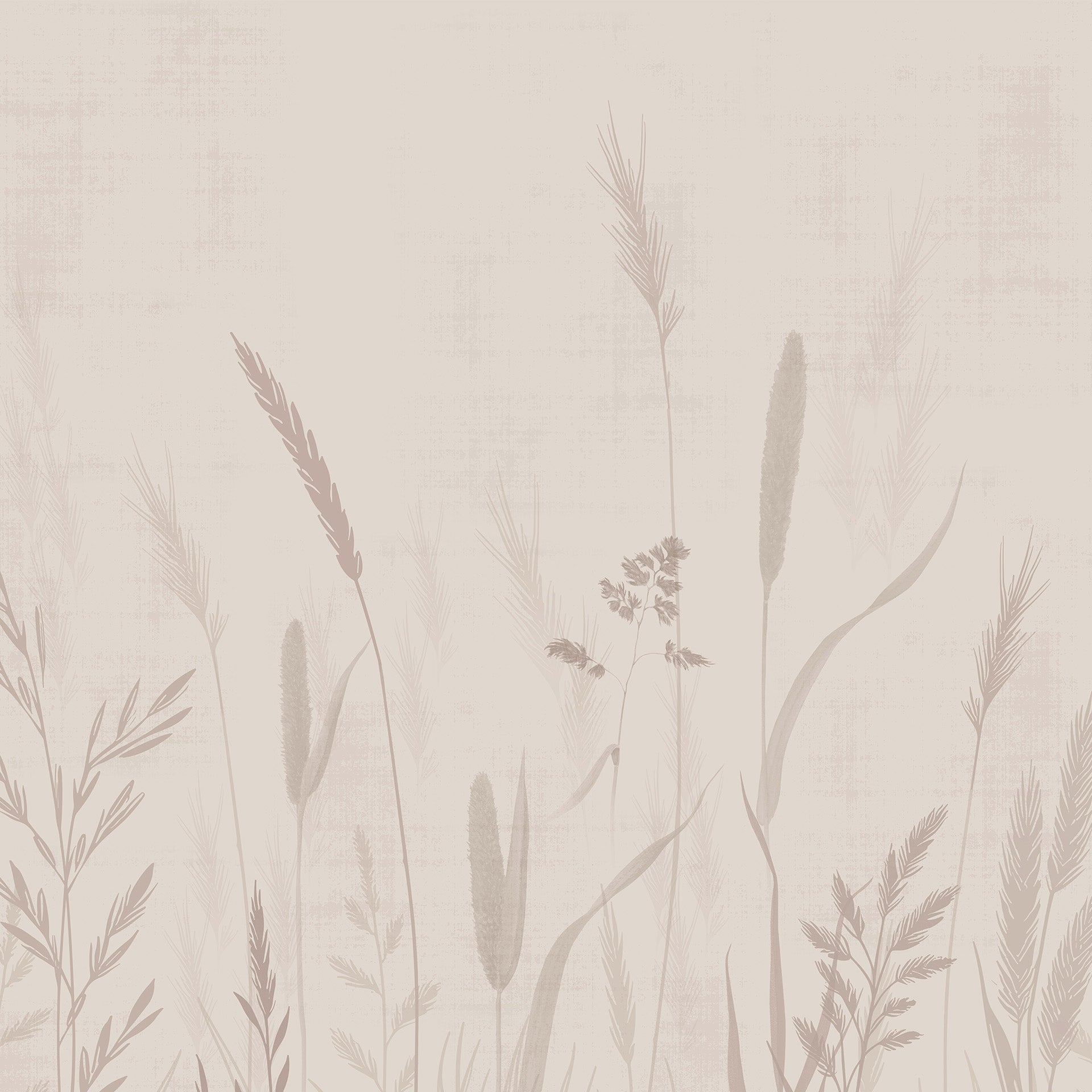 Soft muted silhouettes of wild grasses and meadow plants form a calming beige wallpaper