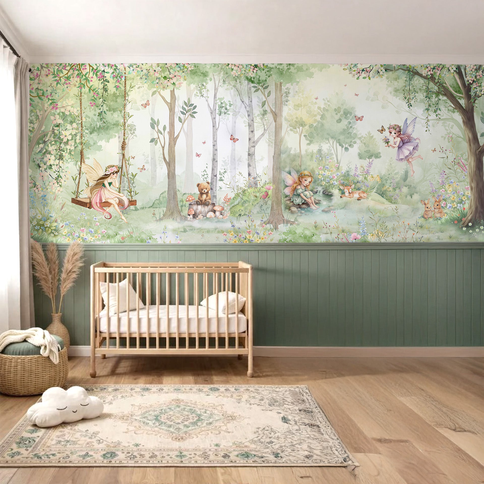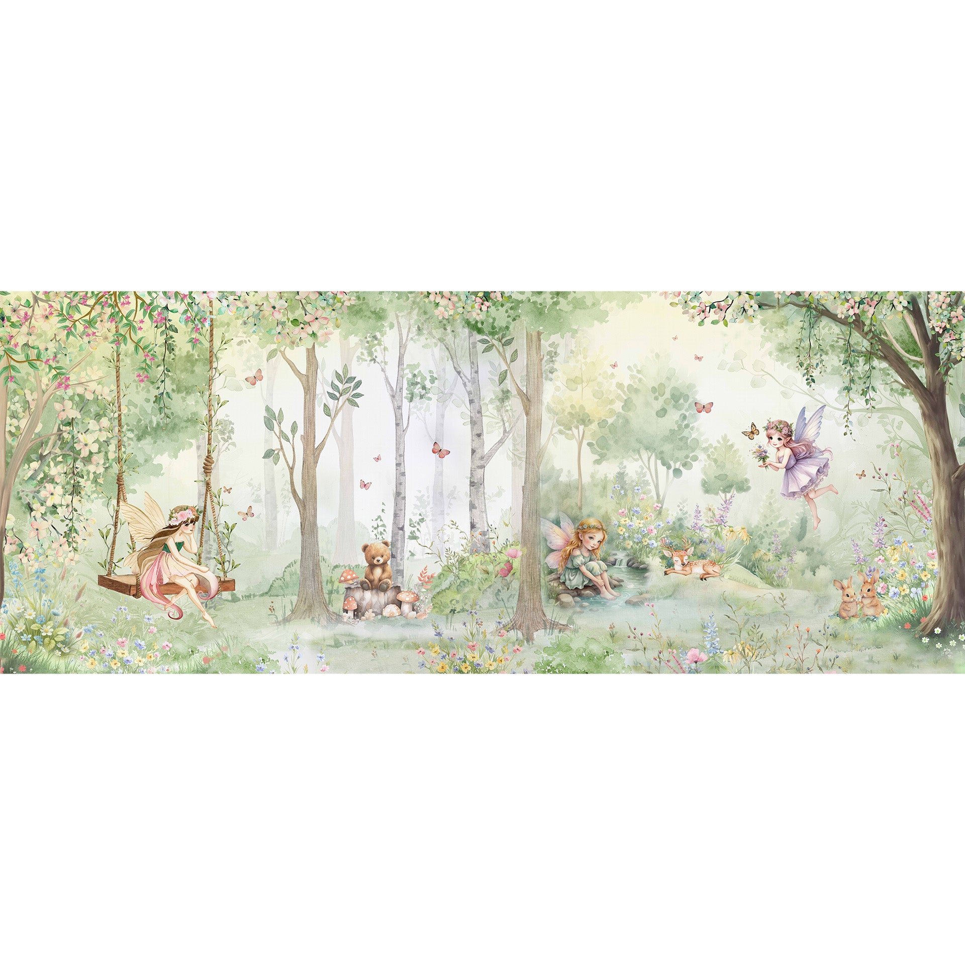 Springwood Story: Whimsical Watercolor Forest Wallpaper With Deer and Rabbits in a Spring Meadow-Sample